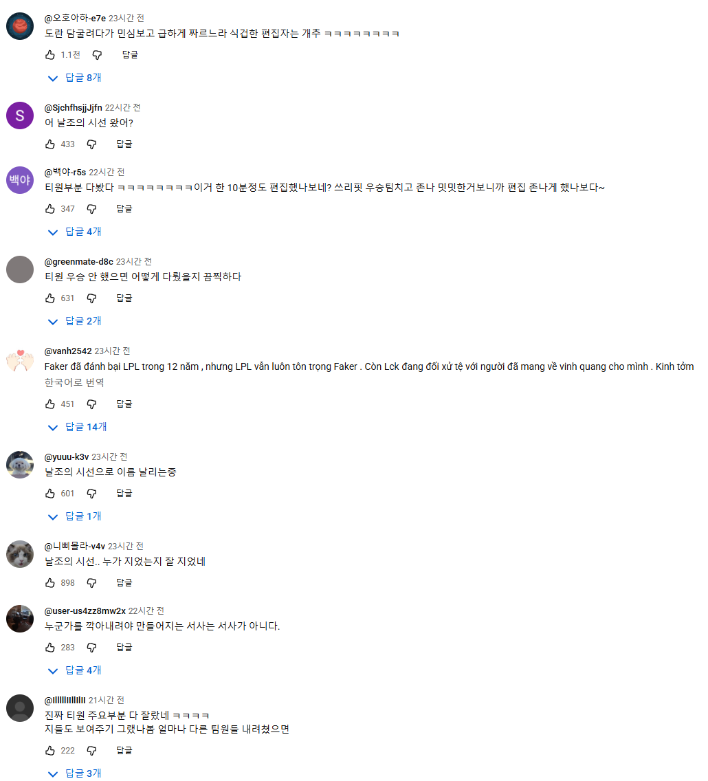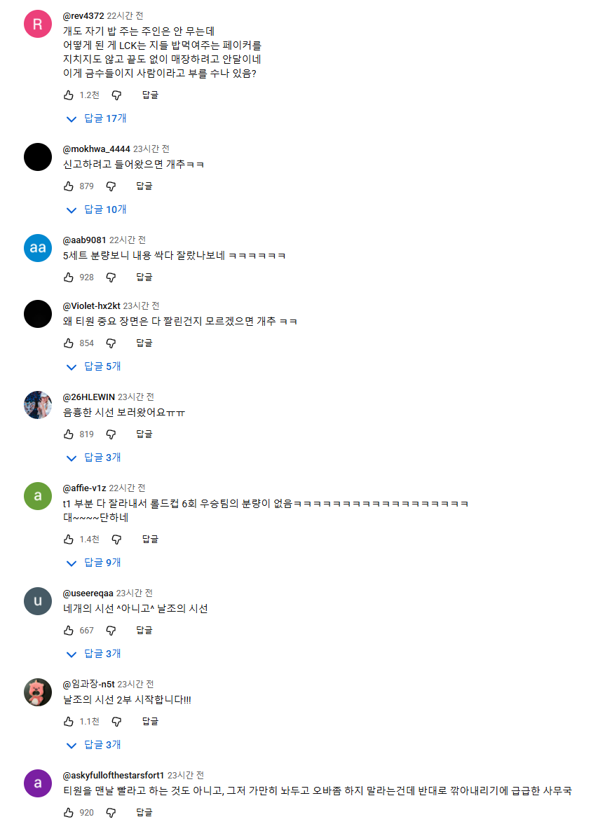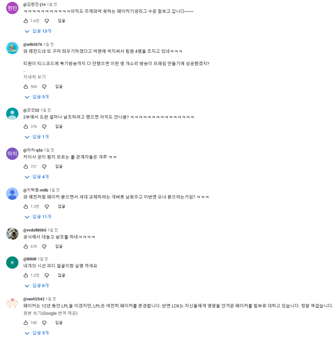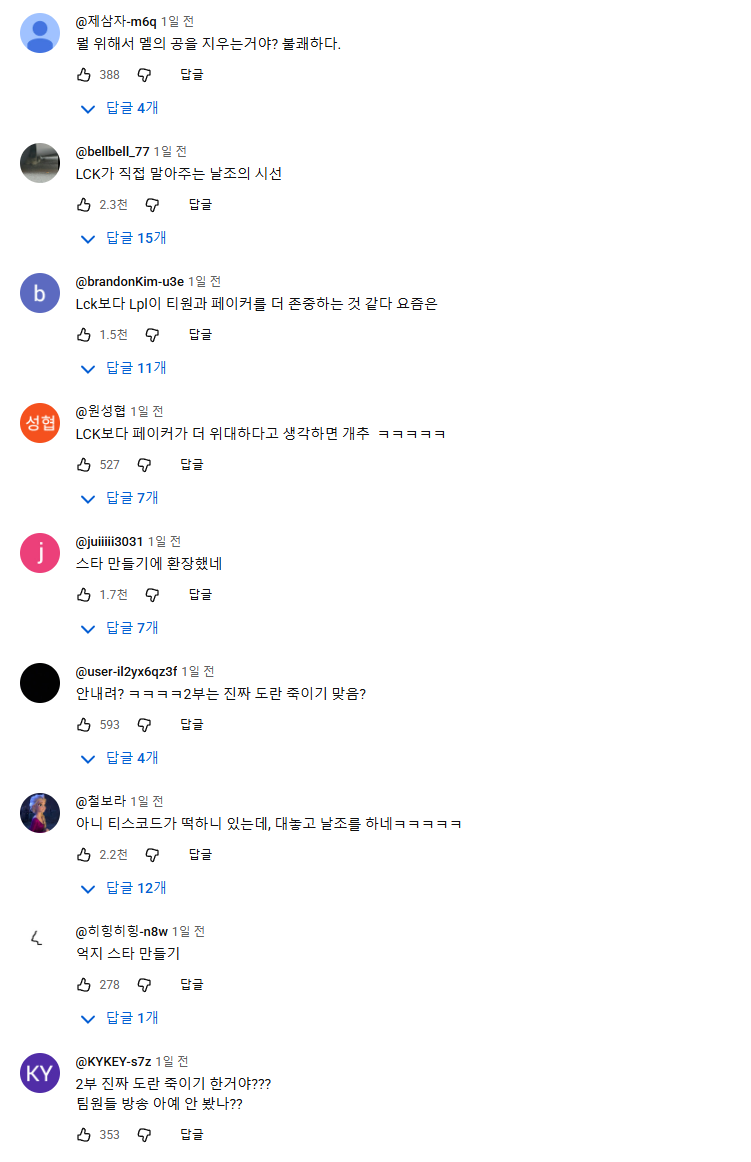 공식 채널 댓글 및 롤 커뮤들에서는