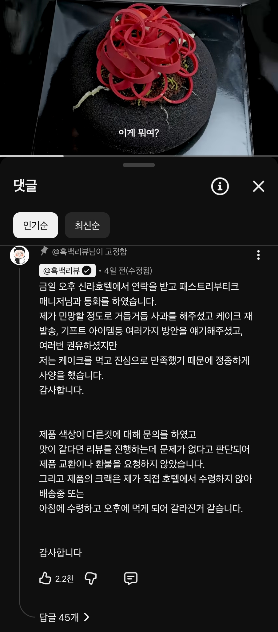 실제로 신라호텔에서 케잌 몇번 구매해보았는데, 일반 케이크던 저런 시즌케이크던 수령전에 꼭 수령인에게 실물 확인을 시켜준 후 패키징해줍니다.