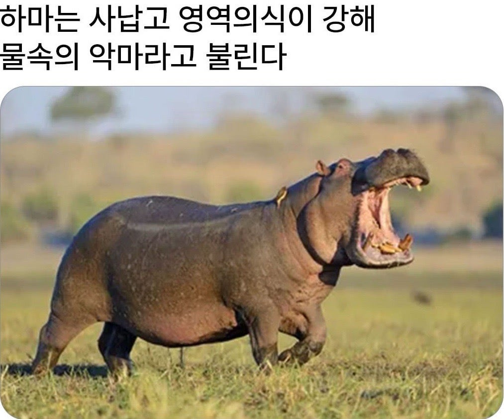 물속의 악마라고 불리는 하마 작성자차두리직진|작성시간25.12.10|조회수11,039 목록 댓글 8 글자크기 작게가 글자크기 크게가 다음검색 현재 게시글 추가 기능 열기 북마크 공유하기 신고 센터로 신고 댓글 댓글 8 댓글쓰기 답글쓰기 댓글 리스트 작성자롭슨 | 작성시간 25.12.11 역시 코형 작성자Real Reds | 작성시간 25.12.11 코형 앞에선 카피바라 같네 작성자I’d rather be ashes than dust | 작성시간 25.12.11 ㅋㅋㅋ 작성자치타 | 작성시간 25.12.11 하마ㄷㄷ 작성자인유특전대 | 작성시간 25.12.11 진짜일수록 긴 설명이 필요없지. 딘딘은 딘딘 댓글 전체보기