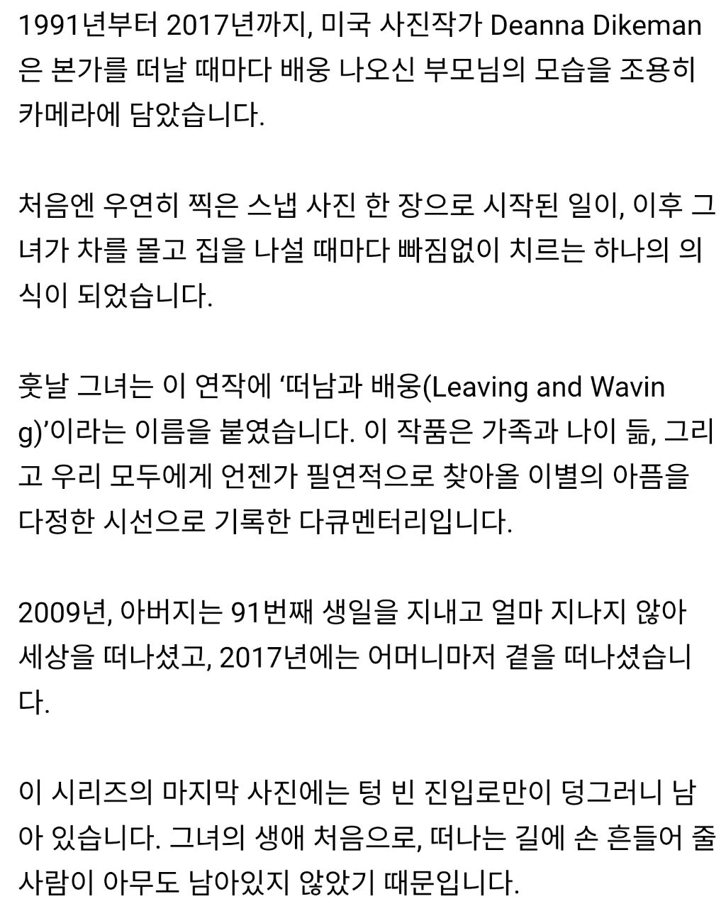 [기타]27년간 찍은 부모님의 모습.jpg 작성자강동구주민 3|작성시간25.12.11|조회수20,854 목록 댓글 3 글자크기 작게가 글자크기 크게가 다음검색 현재 게시글 추가 기능 열기 북마크 공유하기 신고 센터로 신고 댓글 댓글 3 댓글쓰기 답글쓰기 댓글 리스트 작성자Pizza | 작성시간 25.12.11 ㅜㅜㅜㅜㅜ 작성자롭슨 | 작성시간 25.12.11 ㅠㅠ 작성자아메리고 | 작성시간 25.12.11 우리 부모님도 이제 곧 팔순인데 슬프네요 ㅠ 댓글 전체보기