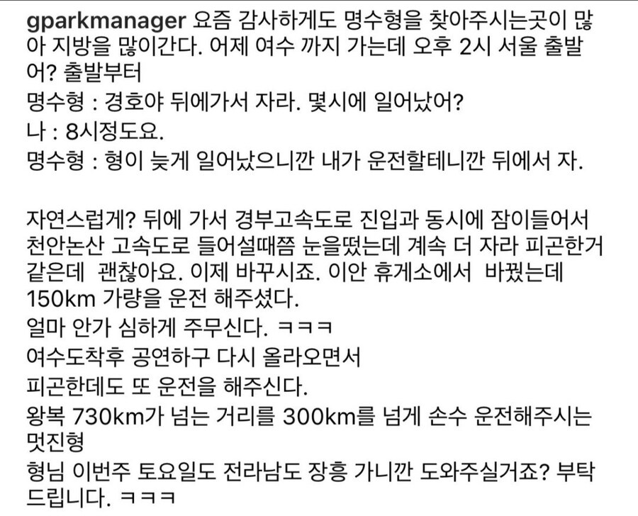 박명수 매니저 인스타.jpg 작성자삼베옷|작성시간25.12.11|조회수10,756 목록 댓글 31 글자크기 작게가 글자크기 크게가 다음검색 현재 게시글 추가 기능 열기 북마크 공유하기 신고 센터로 신고 댓글 댓글 31 댓글쓰기 답글쓰기 댓글 리스트 작성자대한민국 축구 국가대표팀 | 작성시간 25.12.11 캬 작성자해피싸커 | 작성시간 25.12.11 굳굳 작성자tnatropmI | 작성시간 25.12.11 경호야 작성자Arsenal No.1 | 작성시간 25.12.12 명수옹 착하심 작성자메리다 | 작성시간 25.12.12 ??? : 경호야 크루즈 컨트롤 개꿀이다. 댓글 전체보기