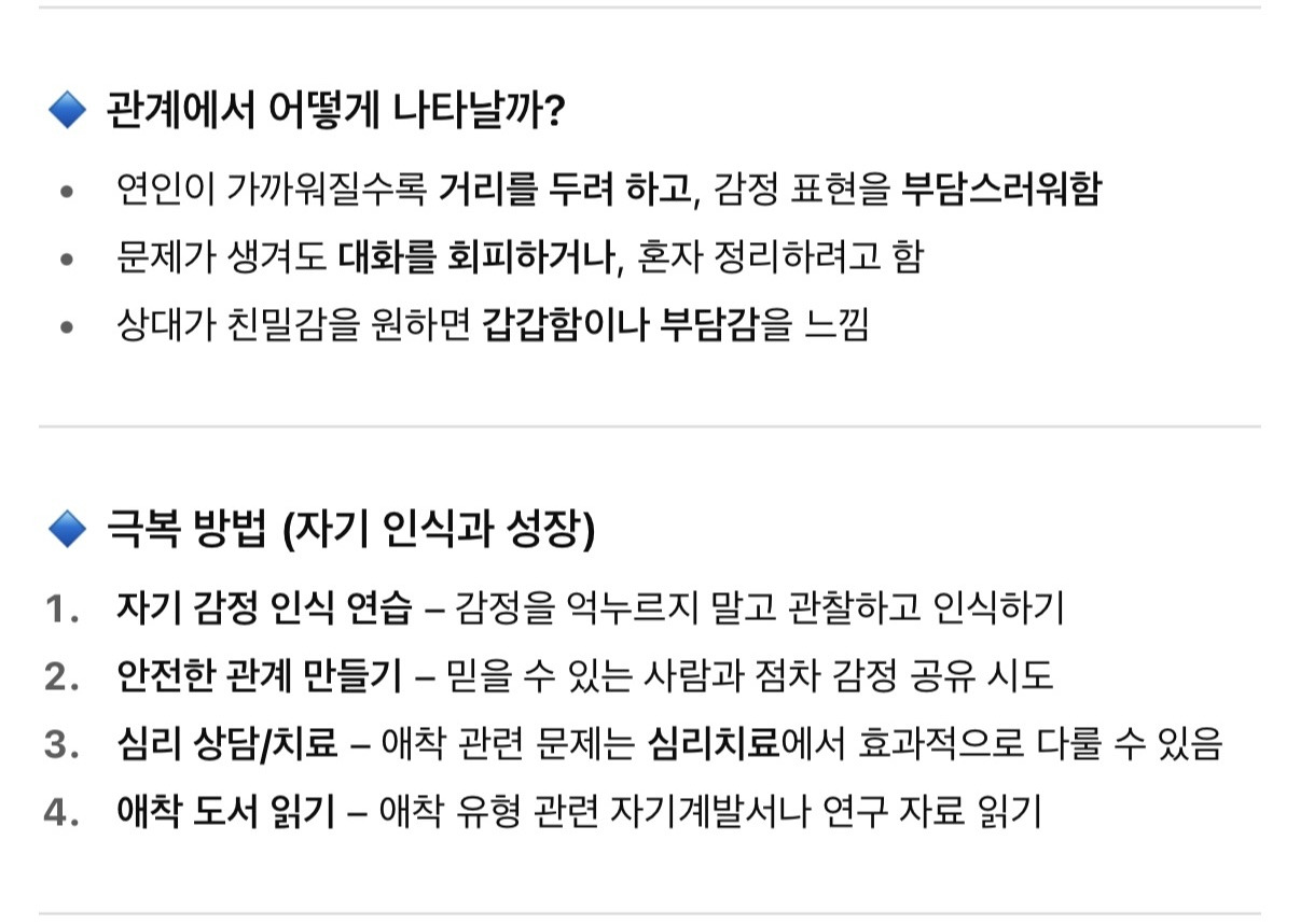 본인이 회피형인게 문제라고 생각하지 않는다면, 사는데 불편하다고 생각하지 않는다면 절대 바뀔수 없다고함