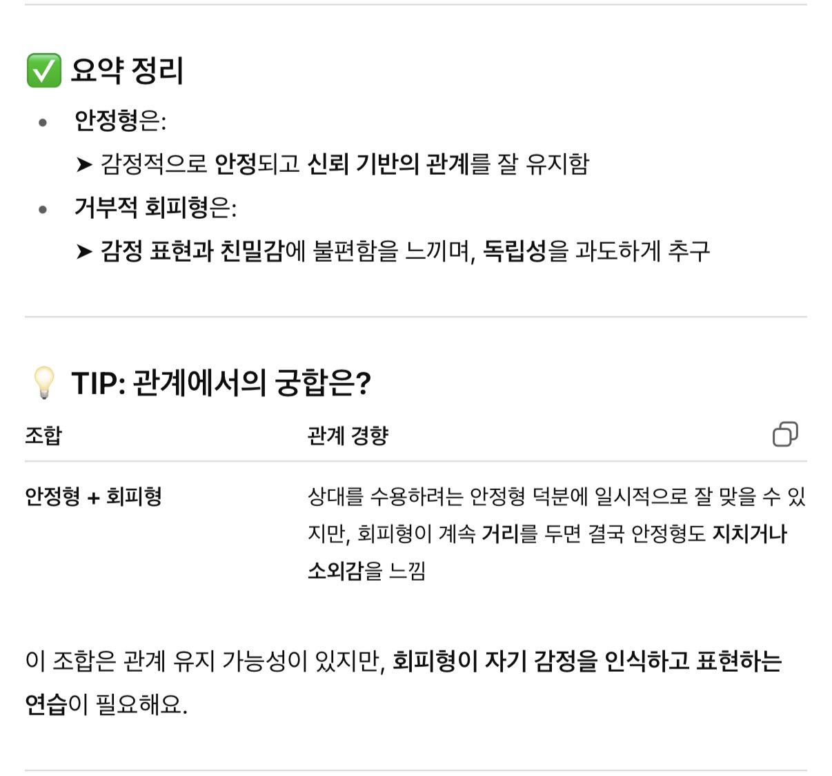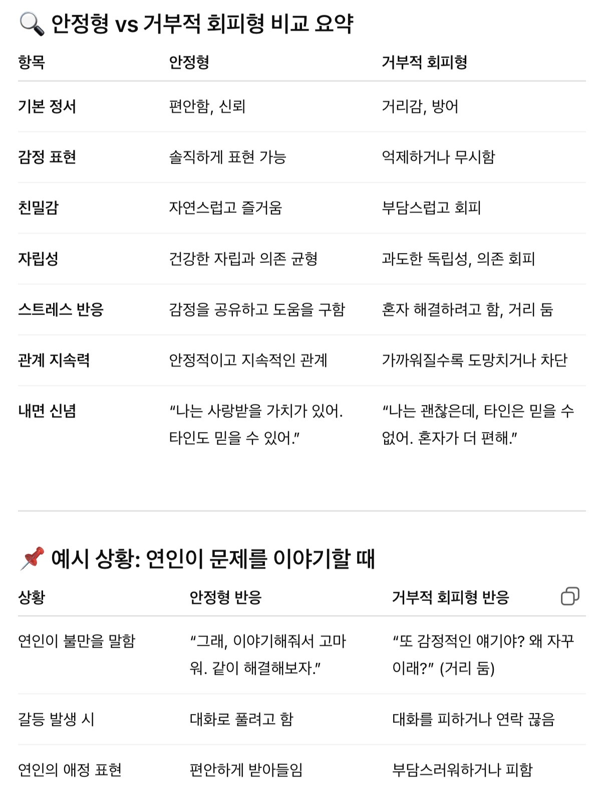 안정형은 대화로 해결 하려고 하지만 회피형은 이런 감정적인 대화 자체를 회피할 확률이 매우 높음