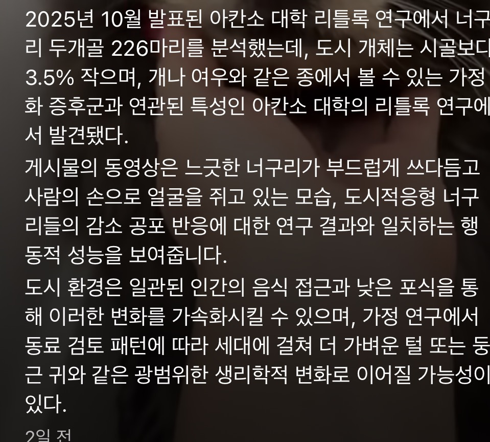 서서히 인간 세상에서 가축화 되고있는거 같다는 동물 작성자스티븐엘리엇|작성시간25.12.12|조회수4,398 목록 댓글 4 글자크기 작게가 글자크기 크게가 라쿤찡(번역은 너구리로 되어있지만 라쿤) 다음검색 현재 게시글 추가 기능 열기 북마크 공유하기 신고 센터로 신고 댓글 댓글 4 댓글쓰기 답글쓰기 댓글 리스트 작성자LoveThanHate | 작성시간 25.12.12 라쿤 동물병원 생기나요 작성자tnatropmI | 작성시간 25.12.12 라쿤 작성자3LungPark | 작성시간 25.12.12 로켓 ㅎㅎㅎㅎ 작성자Tensegrity Universe and Philosophy | 작성시간 25.12.12 광견병은 없나.. 댓글 전체보기