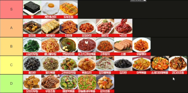 [음식]누군가가 뽑은 밥도둑 티어리스트 작성자yeezy700v3|작성시간25.12.13|조회수1,779 목록 댓글 1 글자크기 작게가 글자크기 크게가 다음검색 현재 게시글 추가 기능 열기 북마크 공유하기 신고 센터로 신고 댓글 댓글 1 댓글쓰기 답글쓰기 댓글 리스트 작성자클클클 | 작성시간 25.12.13 쏘야랑 어묵이 B로 가고 스팸이 A, 계란말이는 C로, 콩자반은 E로 댓글 전체보기