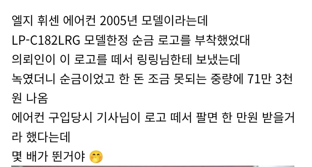 집에 이 에어컨 있는지 확인해봐야 하는 이유 작성자러바오|작성시간25.12.13|조회수8,651 목록 댓글 3 글자크기 작게가 글자크기 크게가 https://theqoo.net/square/4027051204 다음검색 현재 게시글 추가 기능 열기 북마크 공유하기 신고 센터로 신고 댓글 댓글 3 댓글쓰기 답글쓰기 댓글 리스트 작성자tnatropmI | 작성시간 25.12.13 ㄷㄷ 작성자치얼스 | 작성시간 25.12.13 뭔 에어컨에 순금을 박아 엘지 미췬ㅋㅋㅋㅋ 작성자카카될래 | 작성시간 25.12.13 어...? 고향집에 잇느넉같은데.. 댓글 전체보기