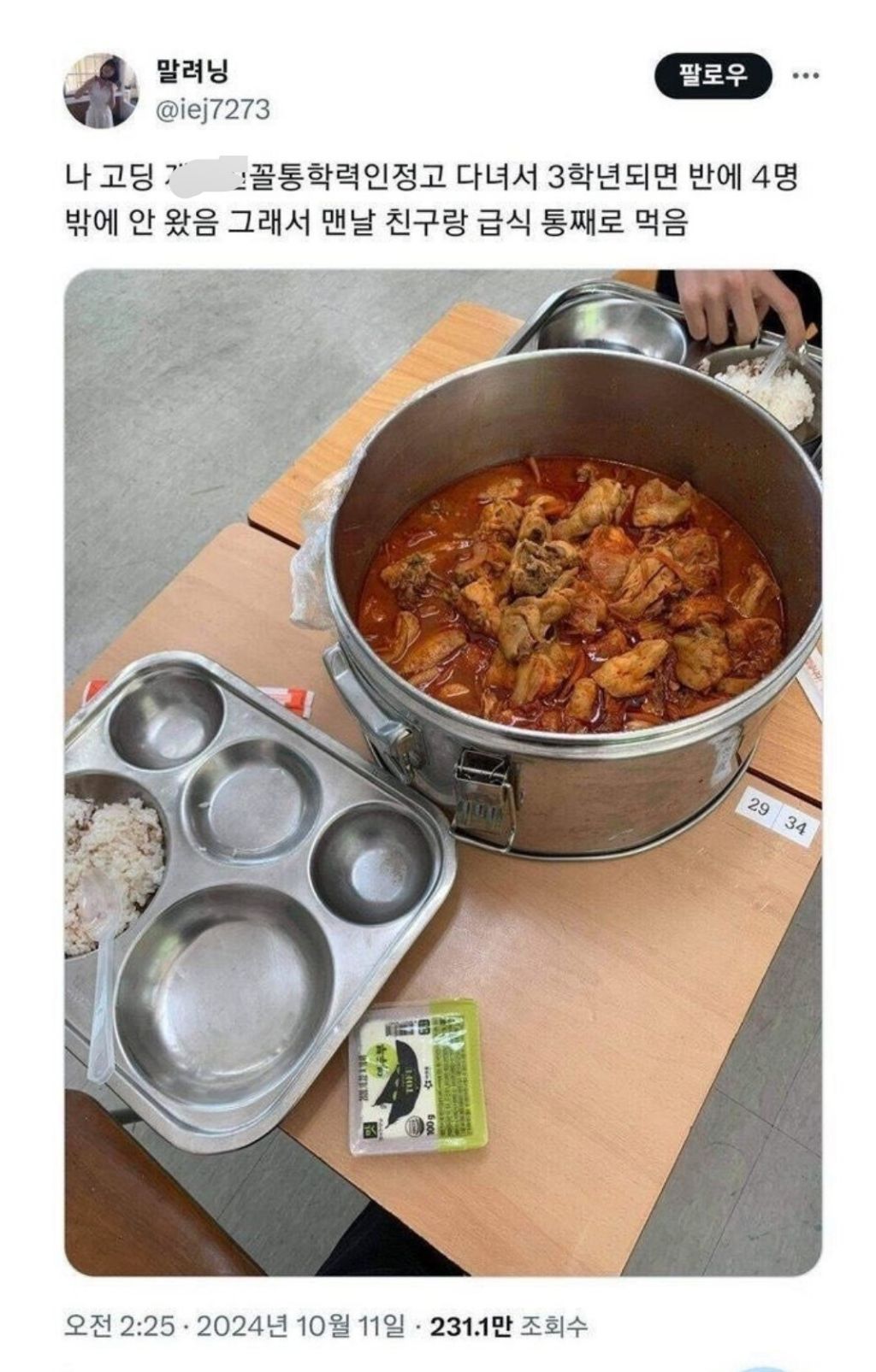권력의 밥상 작성자러바오|작성시간25.12.14|조회수5,030 목록 댓글 3 글자크기 작게가 글자크기 크게가 다음검색 현재 게시글 추가 기능 열기 북마크 공유하기 신고 센터로 신고 댓글 댓글 3 댓글쓰기 답글쓰기 댓글 리스트 작성자슈팅라이크종수 | 작성시간 25.12.14 고등학교때 야간자율학습 튀는 애들이 많아서저녁이 참 풍성했는데 ㅎㅎ 작성자tnatropmI | 작성시간 25.12.14 와우 작성자이천이십이 | 작성시간 25.12.14 와 댓글 전체보기