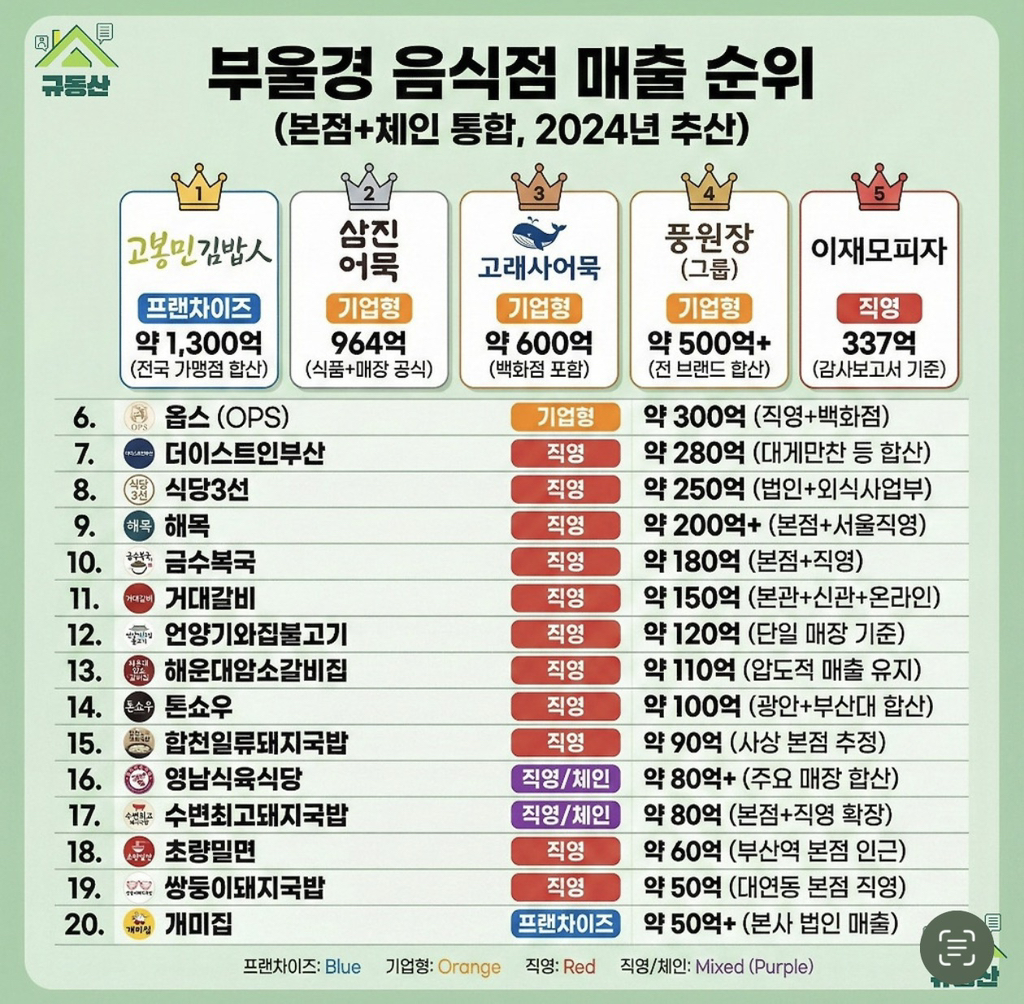 부울경본사 요식업 브랜드 매출순위 작성자디자이너|작성시간25.12.14|조회수5,647 목록 댓글 18 글자크기 작게가 글자크기 크게가 다음검색 현재 게시글 추가 기능 열기 북마크 공유하기 신고 센터로 신고 댓글 댓글 18 댓글쓰기 답글쓰기 댓글 리스트 작성자흑마 | 작성시간 25.12.14 고봉민 많이 안보이지 않아요? 오째 저렇지 작성자costa del sol | 작성시간 25.12.14 언양기와집불고기 단일 매장 대단하네요. 근처 내려갈일 있으면 한번씩 먹긴 하는데 작성자이명재 | 작성시간 25.12.14 이야..기와집 단일매장인데ㄷㄷ 작성자이즈리얼 | 작성시간 25.12.14 춘하추동이 없구나 작성자양미호 | 작성시간 25.12.14 아 기와집 가고싶다아아 댓글 전체보기