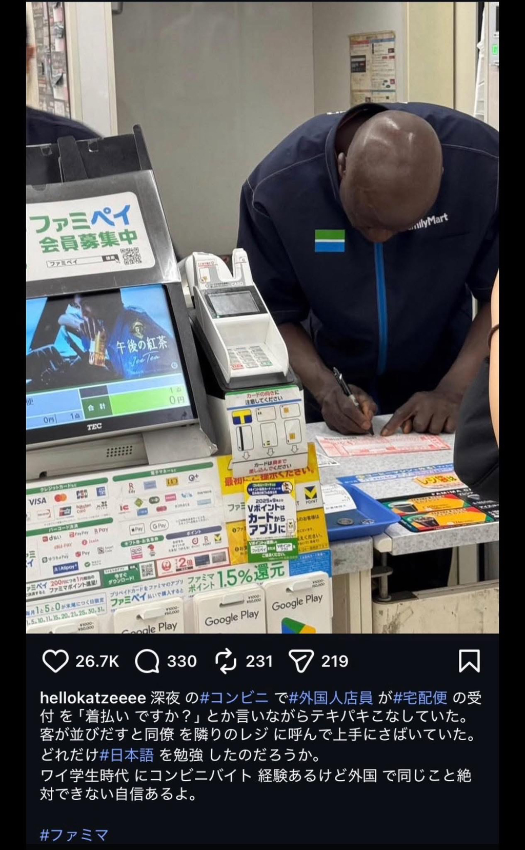 택배 보내려 온 일본인 손님에게 착불 여부를 묻는 등 유창한 일본어로 응대한 외국인 알바생