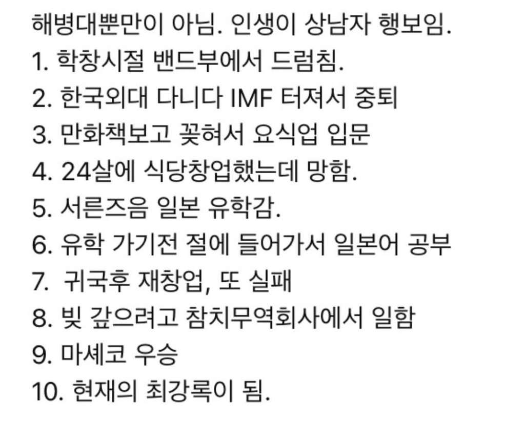 의외로 상남자 인생을 걸어온 사람 작성자가을날4|작성시간25.12.26|조회수20,185 목록 댓글 2 글자크기 작게가 글자크기 크게가 다음검색 현재 게시글 추가 기능 열기 북마크 공유하기 신고 센터로 신고 댓글 댓글 2 댓글쓰기 답글쓰기 댓글 리스트 작성자tnatropmI | 작성시간 25.12.26 와우 작성자멍뭉이 | 작성시간 25.12.26 나야 재도전 댓글 전체보기