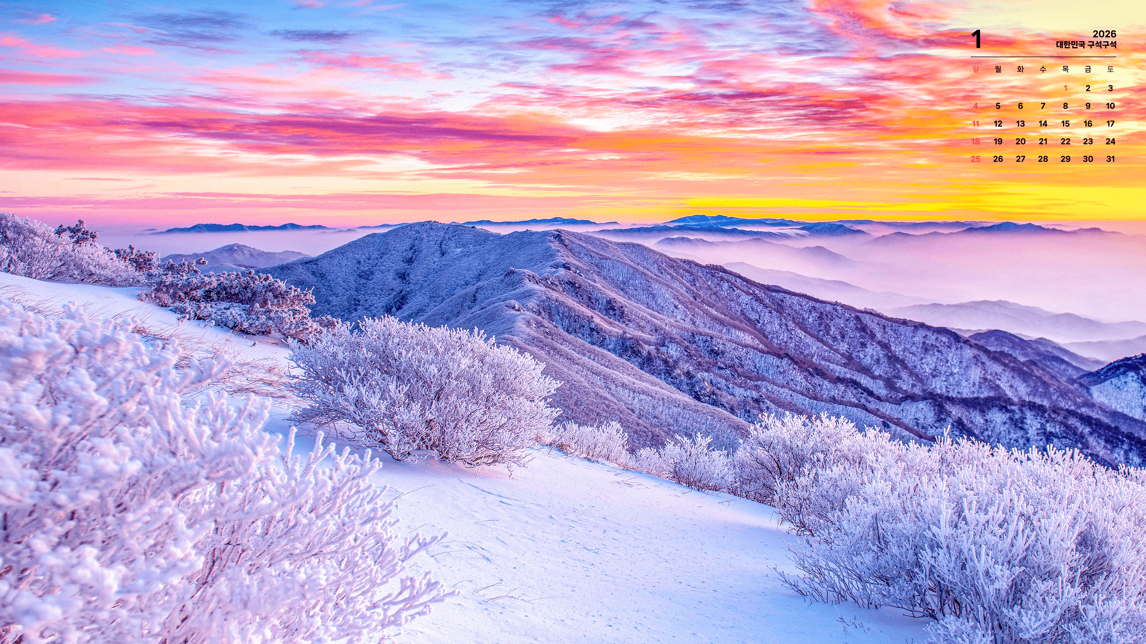 한국관광공사 2026년 1월 배경화면 PC버전 (3840X2160) 작성자Google|작성시간25.12.26|조회수2,097 목록 댓글 7 글자크기 작게가 글자크기 크게가 전남 담양 개구리생태공원 충북 단양 소백산국립공원 대구 불로동고분군 전북 무주 덕유산국립공원 경남 남해 보리암 서울 덕수궁 전북 김제 금산사 서울 창경궁 강원 태백 만항재 https://korean.visitkorea.or.kr/wallpaper/main.do 다음검색 현재 게시글 추가 기능 열기 북마크 공유하기 신고 센터로 신고 댓글 댓글 7 댓글쓰기 답글쓰기 댓글 리스트 작성자GENESIS | 작성시간 25.12.26 보리암에 저런 굴이 있었나..? 작성자김바덕 | 작성시간 25.12.26 보는 관광 느끼는 관광~ 작성자H_Crespo | 작성시간 25.12.26 그저 입이 벌어지는 작성자추아메니 | 작성시간 25.12.26 소백산 배경 잘쓰겠습니다. 이쁘네요 ㄷㄷ 작성자해원 | 작성시간 25.12.26 와 ㄷㄷ 댓글 전체보기