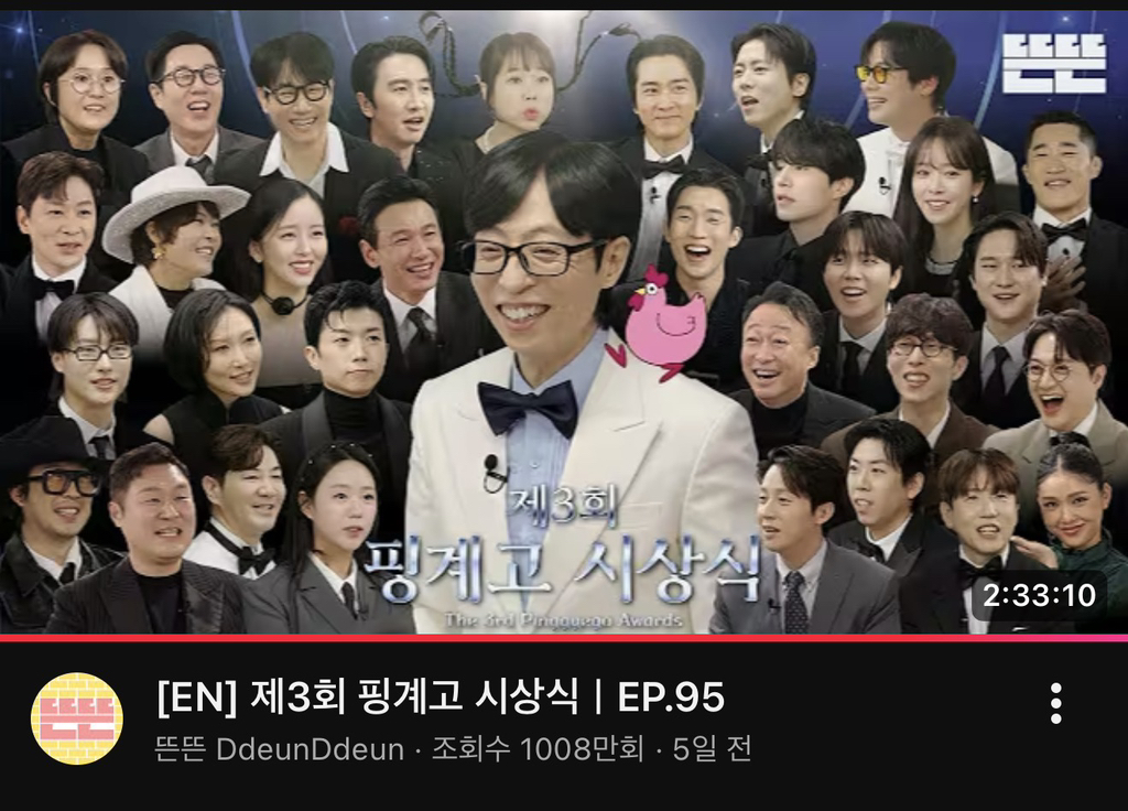 조회수 천만 넘어간 핑계고 시상식 작성자인천서포터즈|작성시간25.12.27|조회수4,074 목록 댓글 9 글자크기 작게가 글자크기 크게가 https://youtu.be/mWibz_ZFo3E?si=A41__nDVgvqz58AU 다음검색 현재 게시글 추가 기능 열기 북마크 공유하기 신고 센터로 신고 댓글 댓글 9 댓글쓰기 답글쓰기 댓글 리스트 답댓글 작성자슈퍼마리오 | 작성시간 25.12.27 안 보여 이쒸 작성자tnatropmI | 작성시간 25.12.27 꿀잼 작성자오스카 아이작 | 작성시간 25.12.27 꾸울잼 작성자이나경 | 작성시간 25.12.27 두시간이 넘는데ㄷㄷ 작성자당나구 | 작성시간 25.12.27 진짜 진짜 재밌게 봄ㅋㅋㅋㅋㅋㅋㅋㅋㅋㅋㅋㅋㅋㅋㅋㅋㅋ 댓글 전체보기