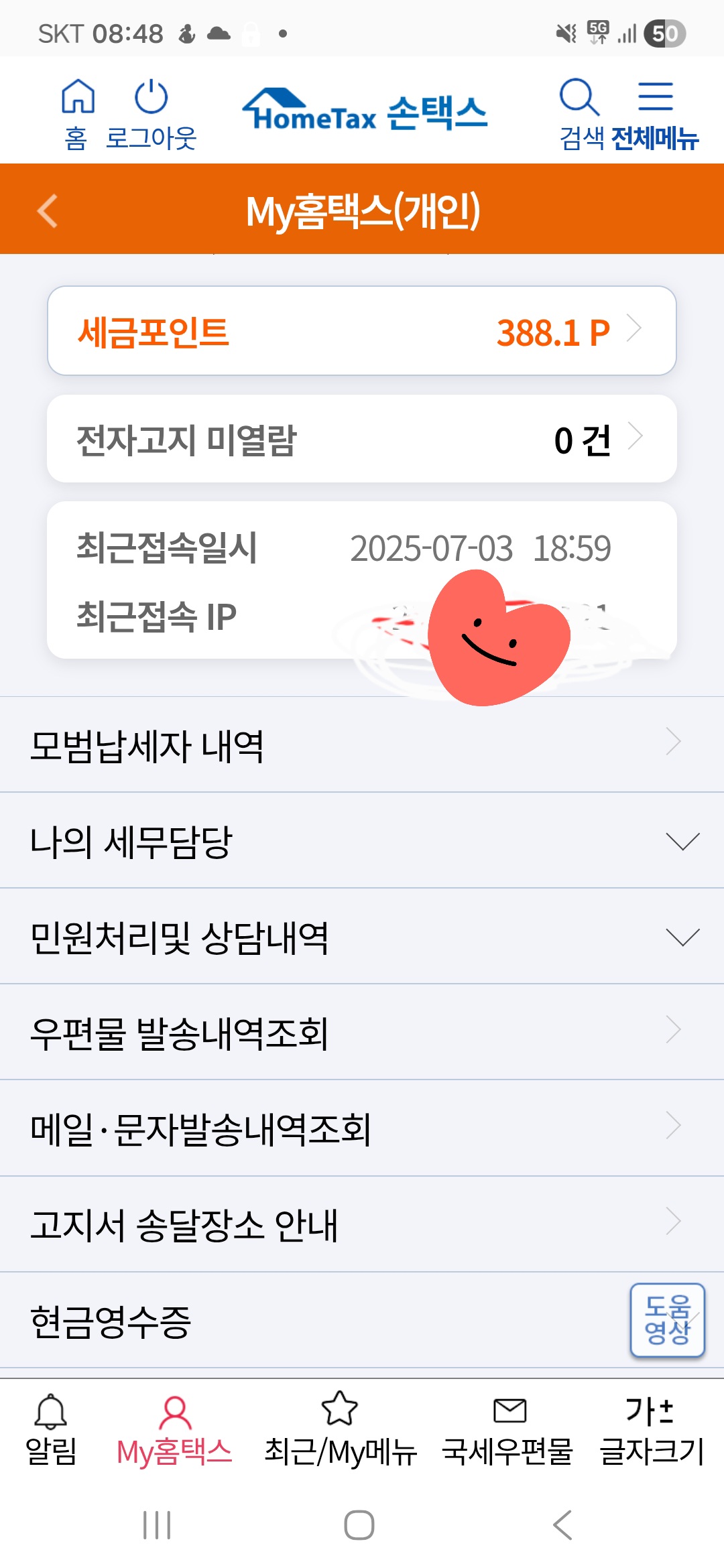 국세청 들어가서 로그인 하시면 세금포인트가 쌓여 있더라구요