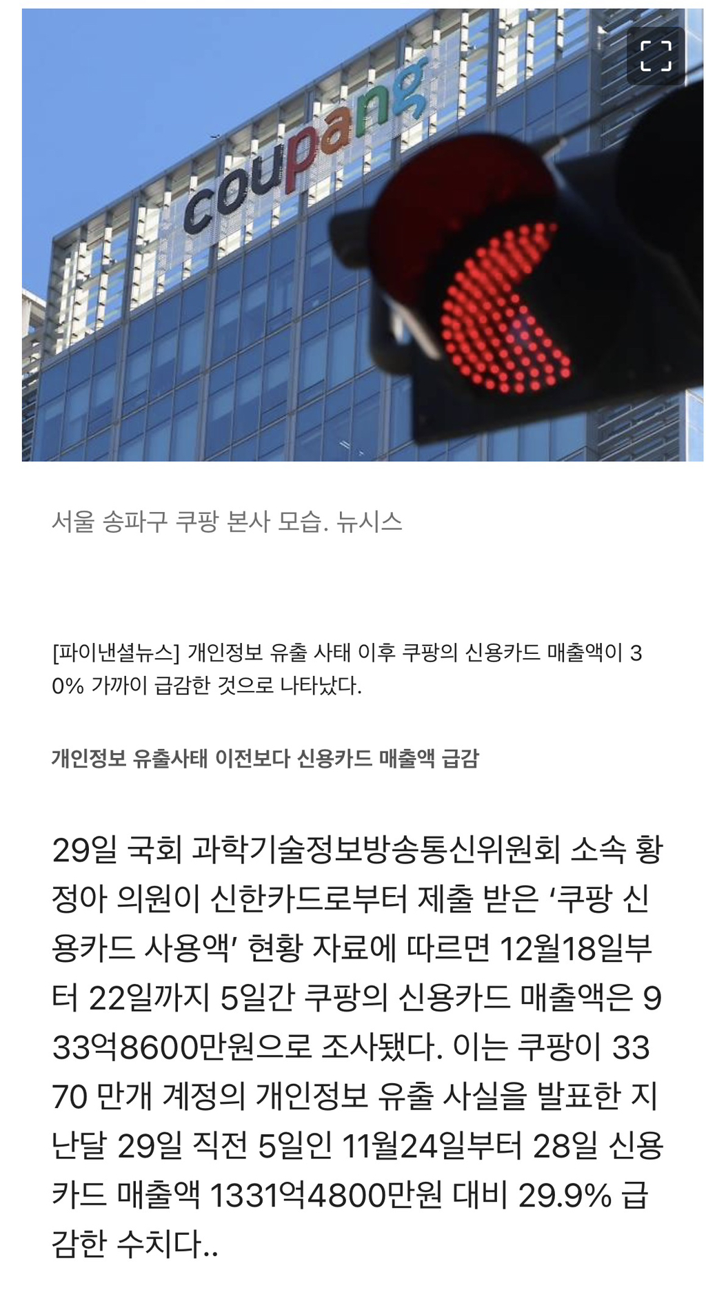 이래서 '1인당 5만원' 보상안 내놨나...쿠팡, 신용카드 매출액 30% 급감 작성자프리들이히|작성시간25.12.29|조회수5,235 목록 댓글 1 글자크기 작게가 글자크기 크게가 https://v.daum.net/v/20251229120107715 다음검색 현재 게시글 추가 기능 열기 북마크 공유하기 신고 센터로 신고 댓글 댓글 1 댓글쓰기 답글쓰기 댓글 리스트 작성자Dennis Cirkin | 작성시간 25.12.29 5만원은 무슨 장난치는거더만 ㅋㅋㅋ 5만원 쿠팡캐시로 다줘도 얼탱이가 없는데 그걸 또 추잡하게 다른 어플 쓰게 하려고 하는거 보고 정신 진짜 못차렸구나 싶더라구요. 댓글 전체보기