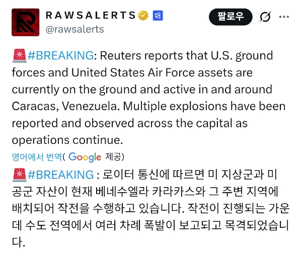 외신에 따르면 베네수엘라 정부는 미국이 자국의 민간시설과 군사 시설을 공격했다며, 이는 베네수엘라의 석유를 노린 것이라고 주장했습니다.