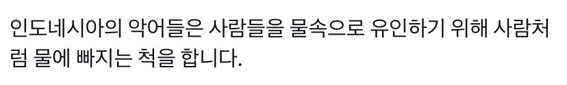 [동물]물속으로 사람을 유인하려는 악어의 트릭.gif 작성자Real Reds|작성시간26.01.04|조회수9,264 목록 댓글 13 글자크기 작게가 글자크기 크게가 다음검색 현재 게시글 추가 기능 열기 북마크 공유하기 신고 센터로 신고 댓글 댓글 13 댓글쓰기 답글쓰기 댓글 리스트 작성자소소비2 | 작성시간 26.01.04 그냥 우연이지 그정도로 머리가 좋지 않음 작성자QuaSaR | 작성시간 26.01.04 요즘 쇼츠보면 ai로 만든 가짜 영상 너무 많아서 헷깔림 답댓글 작성자캐스커 | 작성시간 26.01.04 2222222 답댓글 작성자은하 | 작성시간 26.01.04 ai 성행하기 전에 본거긴 한데 저거 그냥 떠내려가는거 같음 작성자스마슈 | 작성시간 26.01.04 진짠줄 알았네 ㄷㄷ 댓글 전체보기