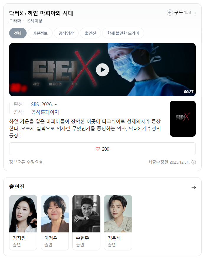 10월 닥터 X : 하얀 마피아의 시대 (김지원, 이정은, 손현주, 김우석)