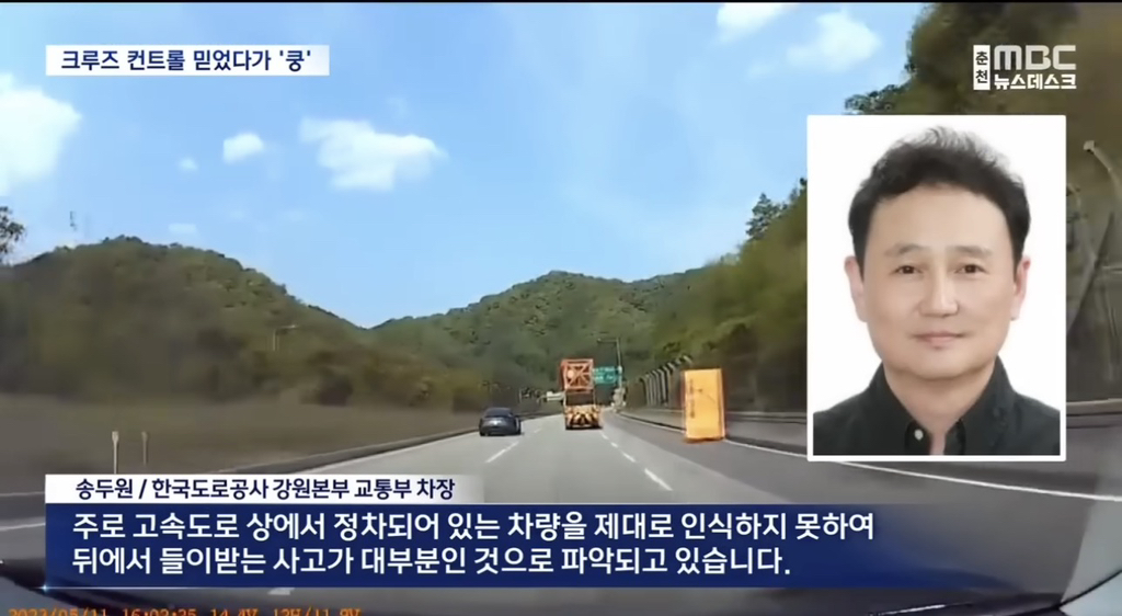 고속도로에서 흔히 보이는 작업중 차량을 인식 못해서 그대로 추돌한 사고