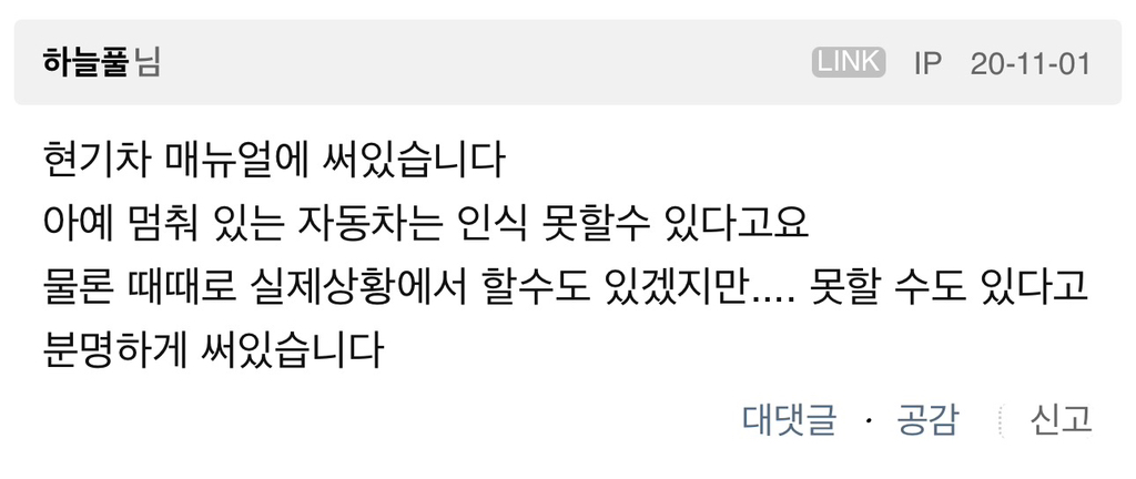 작성자크로스가크로스올리네 작성시간 26.01.06 아니 이걸 기술 탓을 한다고? 정차중인거 인식 안 하는게 너무 당연한거임 일단 자율주행 장치가 아니라 주행보조 장치임 그러니까 핸들을 손으로 잡고 전방주시를 한다는 전제로 시스템이 작동하는거임