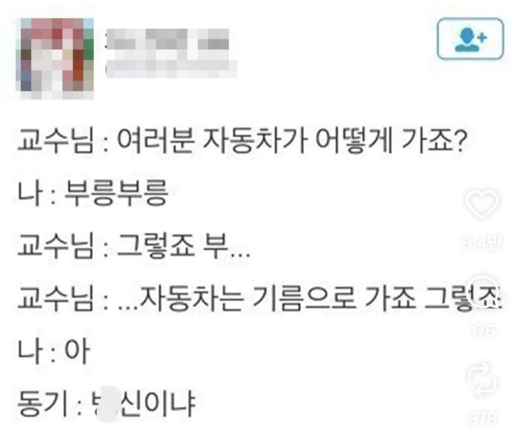 교수님: 여러분 자동차가 어떻게 가죠? 작성자러바오|작성시간26.01.06|조회수1,958 목록 댓글 2 글자크기 작게가 글자크기 크게가 다음검색 현재 게시글 추가 기능 열기 북마크 공유하기 신고 센터로 신고 댓글 댓글 2 댓글쓰기 답글쓰기 댓글 리스트 작성자정예린 | 작성시간 26.01.06 ㅋㅋㅋㅋ 작성자소소비2 | 작성시간 26.01.06 전기 수소로도 가죠 댓글 전체보기