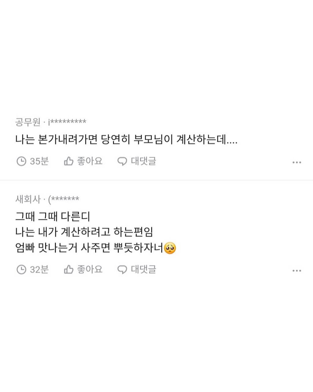 작성자치얼스 작성시간 26.01.06 내가 살 때도 있고, 부모님이 사줄 때도 있고 주고받는 느낌