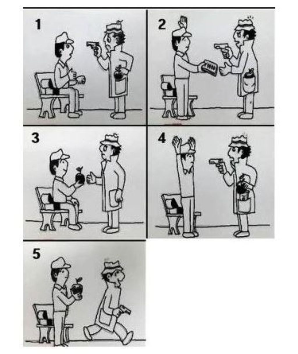 사과를 줬더니, 사과를 받고 돈 달라고 협박함, 바보같이 사과와 돈을 가지고 도망가야하는데 사과는 돌려줌 ㅋㅋ