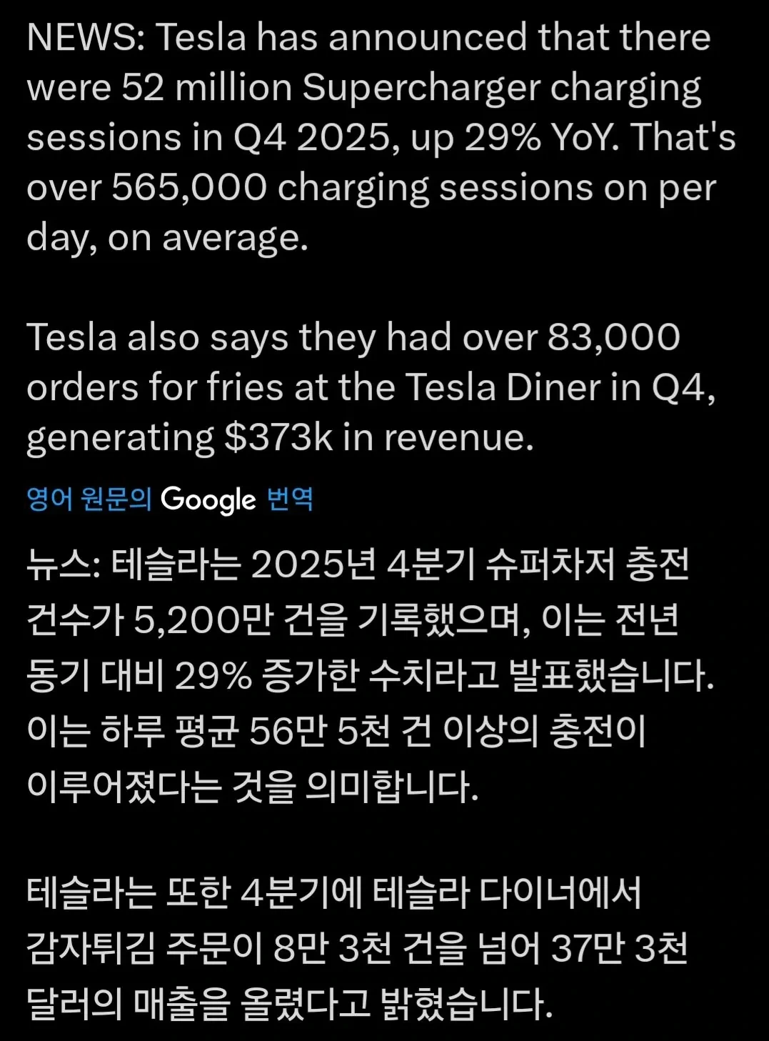 [기타]테슬라 4분기 감튀 판매량.. 작성자rade bogdanovic|작성시간26.01.06|조회수3,303 목록 댓글 4 글자크기 작게가 글자크기 크게가 다음검색 현재 게시글 추가 기능 열기 북마크 공유하기 신고 센터로 신고 댓글 댓글 4 댓글쓰기 답글쓰기 댓글 리스트 작성자Paul Dummett | 작성시간 26.01.06 저 25년 충전 상위 10프로 ㅅㅅ 이미지 확대 답댓글 작성자한이온이 | 작성시간 26.01.06 차 어떤가요?한달간. 주니퍼결제창 왔다갔다 중입니다. 답댓글 작성자Paul Dummett | 작성시간 26.01.06 한이온이 전 하이랜드인데 걍 탈만해요 ㅋㅋ 주니퍼면 좋죠 뭐 ㅋㅋ 작성자한로로로 | 작성시간 26.01.06 사고싶다 테슬라 댓글 전체보기