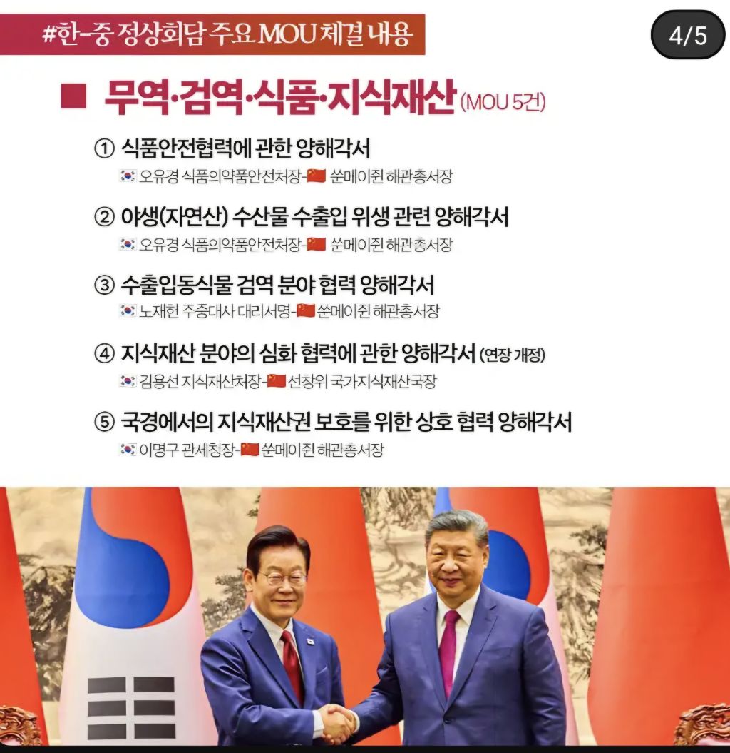 [정치]이대통령 유튜브 게시물로 본 간략 한중회담 결과 작성자은돌아놀자|작성시간26.01.06|조회수4,078 목록 댓글 23 글자크기 작게가 글자크기 크게가 https://youtu.be/9ssbduiJWWs?si=gU6veLoMIzCezC4x선물받은 샤오미로 시진핑과 셀카 찍는 잼프 ㅋ귀하다요진핑아 잘하자 다음검색 현재 게시글 추가 기능 열기 북마크 공유하기 신고 센터로 신고 댓글 댓글 23 댓글쓰기 답글쓰기 댓글 리스트 작성자Daniel Agger | 작성시간 26.01.06 미국이 기후위기대처 반대하고 중국이 신경쓰는것도 웃기네ㅋ 작성자Overture! | 작성시간 26.01.06 이제 시작인 단계라 성과 잘 냈으면 좋겠네요 mou는 어차피 말 그대로 양해각서라 실행이 잘 되는 게 중요… 작성자덤앤더머 | 작성시간 26.01.06 다 가따 바치는구나 ㅜㅜ라고 저쪽은 생각하겠지 작성자동자씨* | 작성시간 26.01.06 그냥 mou뿐이네.. 작성자구르미 | 작성시간 26.01.06 댓글 전체보기