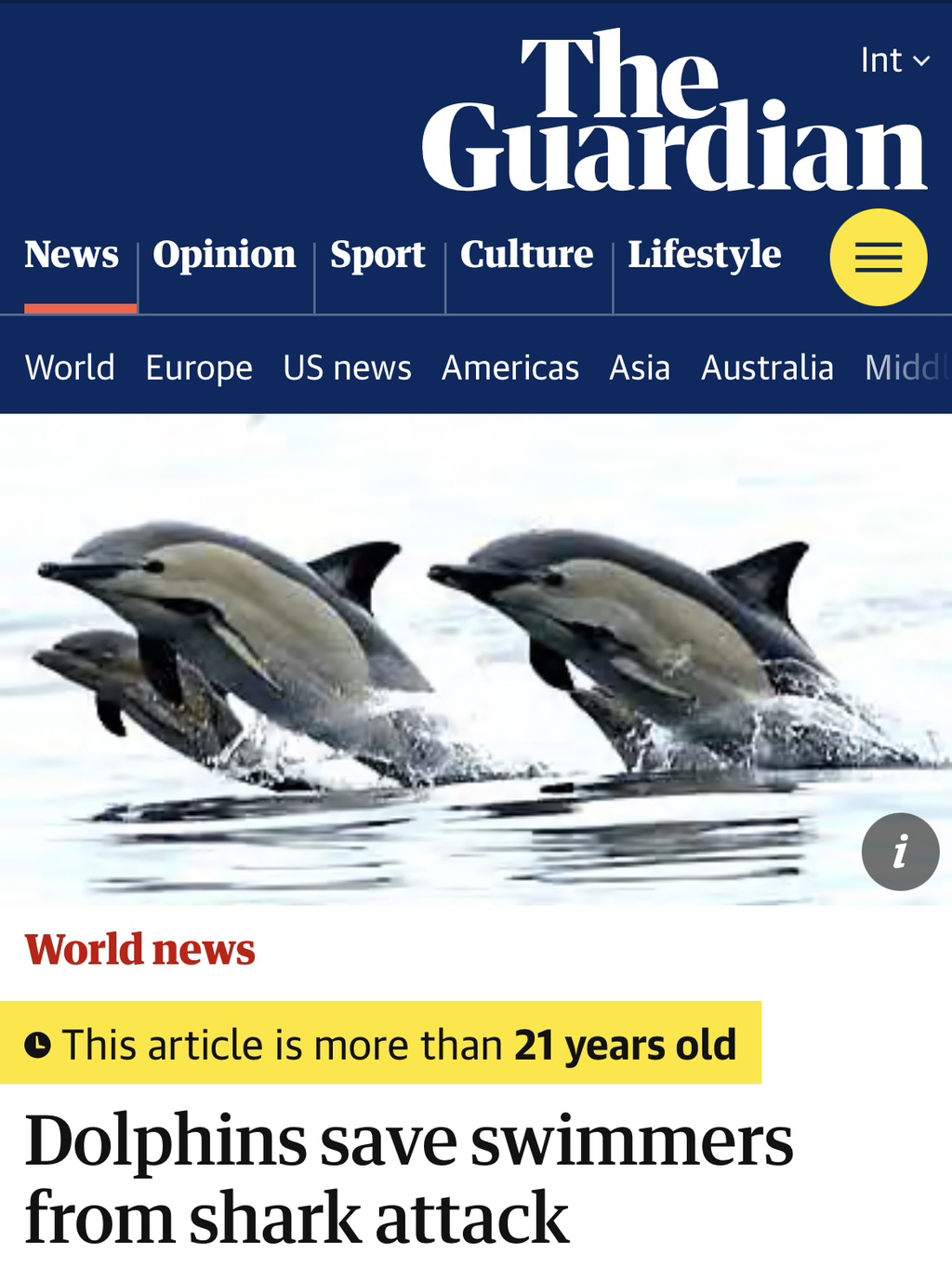 이 외에도 돌고래들이 사람을 보호하는 듯한 상황들이 전 세계적으로 여럿 보고됨 (과학적으로 입증된 건 아님)