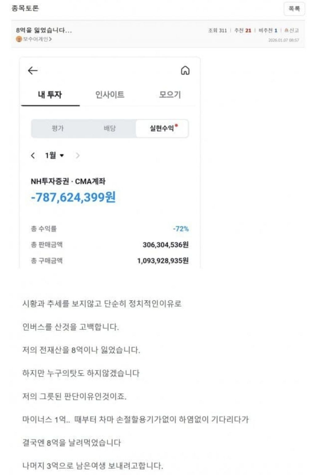 작성자인유특전대 작성시간 26.01.08 남은 3억은 과연 가만 놔둘까?