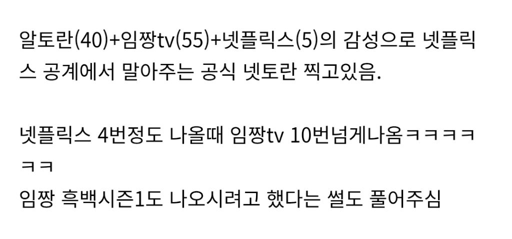 [스포주의]임짱을 삼켜버린 넷플릭스 공계 작성자러바오|작성시간26.01.10|조회수8,308 목록 댓글 6 글자크기 작게가 글자크기 크게가 ⬇️넷플 공계⬇️아래가 임짱말투ㅋㅋㅋhttps://youtu.be/EanpnyMF6A4https://theqoo.net/square/4056786222 다음검색 현재 게시글 추가 기능 열기 북마크 공유하기 신고 센터로 신고 댓글 댓글 6 댓글쓰기 답글쓰기 댓글 리스트 작성자Moonrise💙 | 작성시간 26.01.10 ㅋㅋㅋㄱㅋㄱㅋㅋㄱㅋ 직접 공계에 쓰셨다해도 믿겟다 ㅋㅋㅋㅋㄱ 작성자김재환 | 작성시간 26.01.10 넷토란ㅋㅋㅋㅋㅋㅋㅋ 작성자뇨뇨뇨 | 작성시간 26.01.10 김풍 빨리만났으면 작성자오스카 아이작 | 작성시간 26.01.10 ㅋㅋㅋㅋㅋㅋㅋ 작성자김묘성 | 작성시간 26.01.10 ㅋㅋㅋㅋㅋㅋㅋ 댓글 전체보기