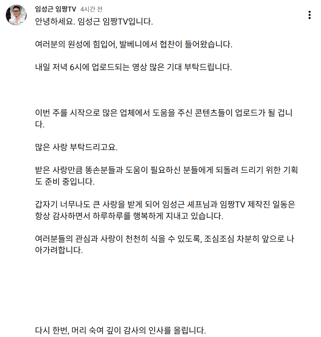 [기타]여러분의 원성에 힘입어 발베니 협찬을 받게 된 임짱TV 작성자서스날|작성시간26.01.12|조회수5,557 목록 댓글 4 글자크기 작게가 글자크기 크게가 다음검색 현재 게시글 추가 기능 열기 북마크 공유하기 신고 센터로 신고 댓글 댓글 4 댓글쓰기 답글쓰기 댓글 리스트 작성자프랭크 램파드 | 작성시간 26.01.12 리신 무엇 ㅋㅋ 작성자똠양꿍 | 작성시간 26.01.12 발베니를 소주처럼 마시드만 ㄷㄷ 작성자앵꼬 | 작성시간 26.01.12 원성에 힘입어ㅋㅋㅋㅋㅋㅋ 작성자내일해야지 | 작성시간 26.01.12 원성 똥손분들 관심과 사랑이 천천히 식을 수 있도록짧은 글에도 포인트가 ㅋㅋㅋㅋㅋ 댓글 전체보기