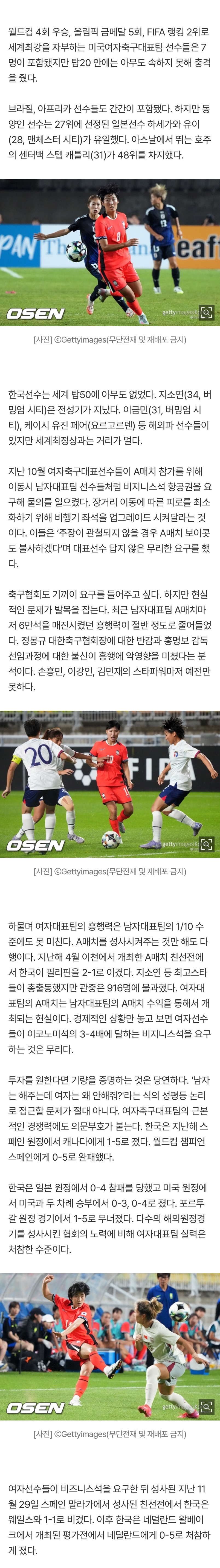 협회가 돈이 있으니 비즈니스 정도는 해줄 수 있는 거 아니냐고 하는데, 협회가 돈이 있기 때문에 그나마 그 성적에도 해외 원정 잡아주고 비행기도 태워주는 거라고 생각함. 국제대회에서 별다른 성과 못 내는 다른 비인기 종목 선수들은 자비로 비행기 탄다는 걸 알아야 함. 바로 옆에 우리나라 국대 스포츠를 상징하는 팀이 있다 보니, 자신들의 위치를 제대로 인식 못하는 게 아닌가 싶음.