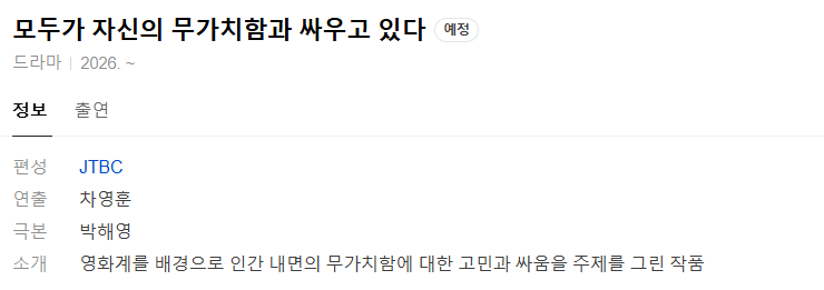 3위 JTBC 모두가 자신의 무가치함과 싸우고 있다 (구교환, 고윤정, 오정세, 강말금, 박해준, 한선화) 4표