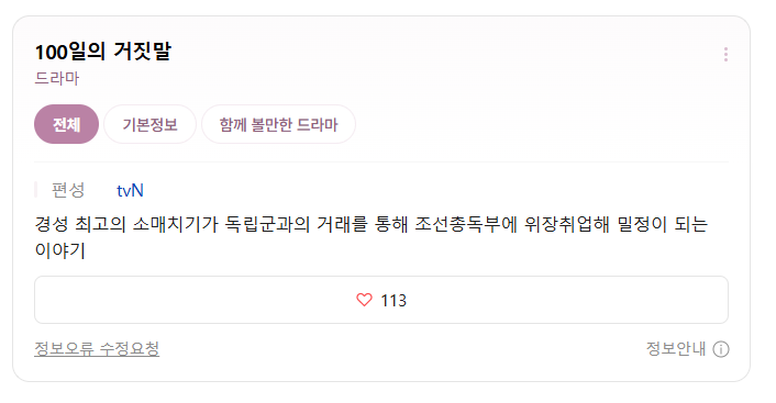 공동 4위 tvN 100일의 거짓말 (김유정, 김현주, 박진영, 진선규) 3표