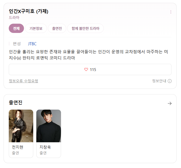 공동 2위 JTBC 인간X구미호 (전지현, 지창욱) 6표
