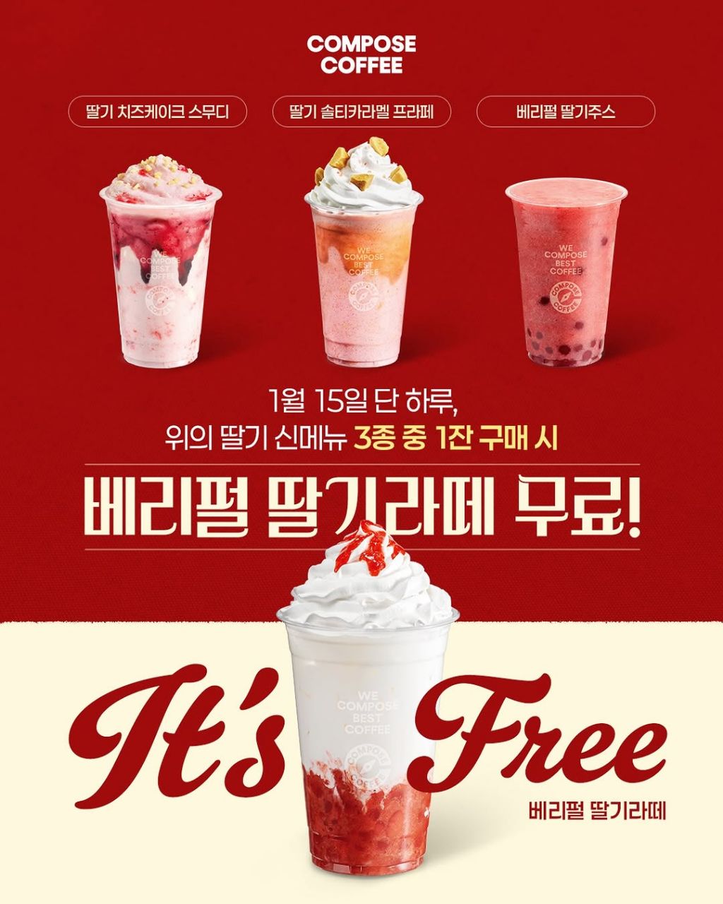 [정보]1월 15일 컴포즈커피 딸기 신메뉴 구매시 딸기라떼 증정 작성자별나들이|작성시간26.01.13|조회수3,039 목록 댓글 5 글자크기 작게가 글자크기 크게가 다음검색 현재 게시글 추가 기능 열기 북마크 공유하기 신고 센터로 신고 댓글 댓글 5 댓글쓰기 답글쓰기 댓글 리스트 작성자오스먼트 | 작성시간 26.01.13 우와! 답댓글 작성자일요일 | 작성시간 26.01.13 사먹을건가요 답댓글 작성자오스먼트 | 작성시간 26.01.13 일요일 그날 시간이 된다면요. 작성자정예린 | 작성시간 26.01.13 저 사먹을 예정 답댓글 작성자일요일 | 작성시간 26.01.13 어떤메뉴요? 댓글 전체보기