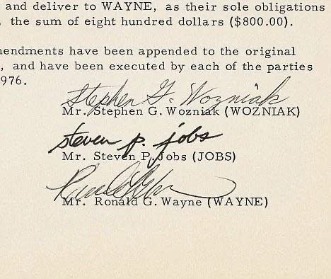 1976년 로널드 웨인은 지인 둘과 한 회사를 창업했지만 리스크 등이 염려되어 12일만에 800달러를 받고 지분 10%를 공동 창업들에게 팔아버림