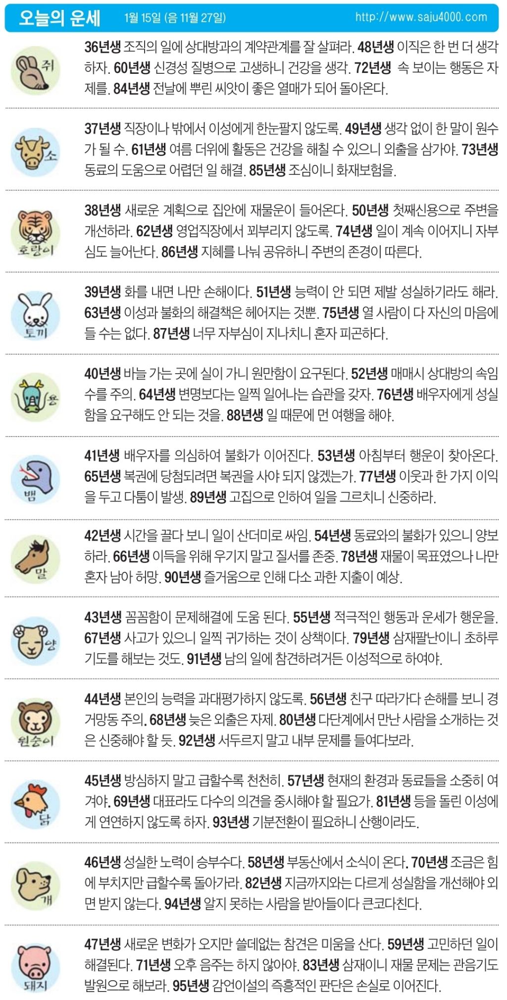 1월 15일 목요일 오늘의 운세 작성자난누군가또여긴어딘가.|작성시간26.01.15|조회수2,732 목록 댓글 17 글자크기 작게가 글자크기 크게가 다음검색 현재 게시글 추가 기능 열기 북마크 공유하기 신고 센터로 신고 댓글 댓글 17 댓글쓰기 답글쓰기 댓글 리스트 작성자Amier | 작성시간 26.01.15 복채요 작성자펭송합니다 | 작성시간 26.01.15 복채용 작성자정예린 | 작성시간 26.01.15 복채요 작성자랩퍼싸박 | 작성시간 26.01.15 복채요 작성자우상향 | 작성시간 26.01.15 댓글 전체보기