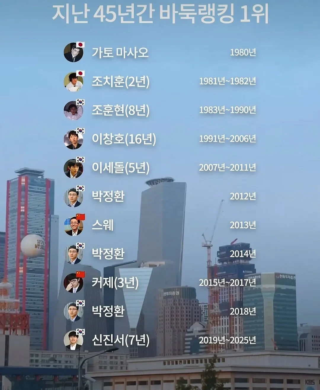 답댓글 작성자Royal_Black☆SFC 작성시간 26.01.16 중국랭킹 30위까지가 전부 일류기사라 오래 해먹기가 어렵죠. 그나마 가장 가능성 높은 게 커제였는데 인공지능 시대가 오면서 독주가 오래 가지 못했고요.