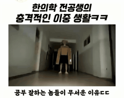 [움짤]한의학 전공생의 충격적인 이중생활.gif 작성자ChatGPT|작성시간26.01.15|조회수11,771 목록 댓글 5 글자크기 작게가 글자크기 크게가 ㄷㄷㄷhttps://youtu.be/wzC0hGN6Ym0?si=d8YVF6IrIbCQK--z 다음검색 현재 게시글 추가 기능 열기 북마크 공유하기 신고 센터로 신고 댓글 댓글 5 댓글쓰기 답글쓰기 댓글 리스트 작성자잔소리 봇 | 작성시간 26.01.15 혈자리에 침맞으면 무공 쓸수 있나요? 작성자오이는빼고주세요 | 작성시간 26.01.15 이정도 움직임이라니... 대학원생인가? 작성자Class | 작성시간 26.01.15 복도가 무서운데 ㄷ 작성자수박쥬스 | 작성시간 26.01.15 찍은 사람도 장난 아니네 ㅋㅋㅋㅋㅋ 작성자I’d rather be ashes than dust | 작성시간 26.01.16 ㄷㄷ 댓글 전체보기