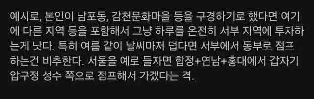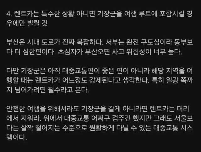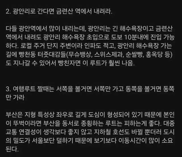 서면에 숙소잡으면 어디든 다니기 조금씩 더 불편해짐. 3번이랑 연관지어서 차라리 가보기로 한 쪽에 잡는게 훨씬 나음. 남포-감천문화마을 보러 갈거면 송도에 숙소잡거나 하면 가격이나 퀄리티는 비슷하거나 더 나을수도있음. -