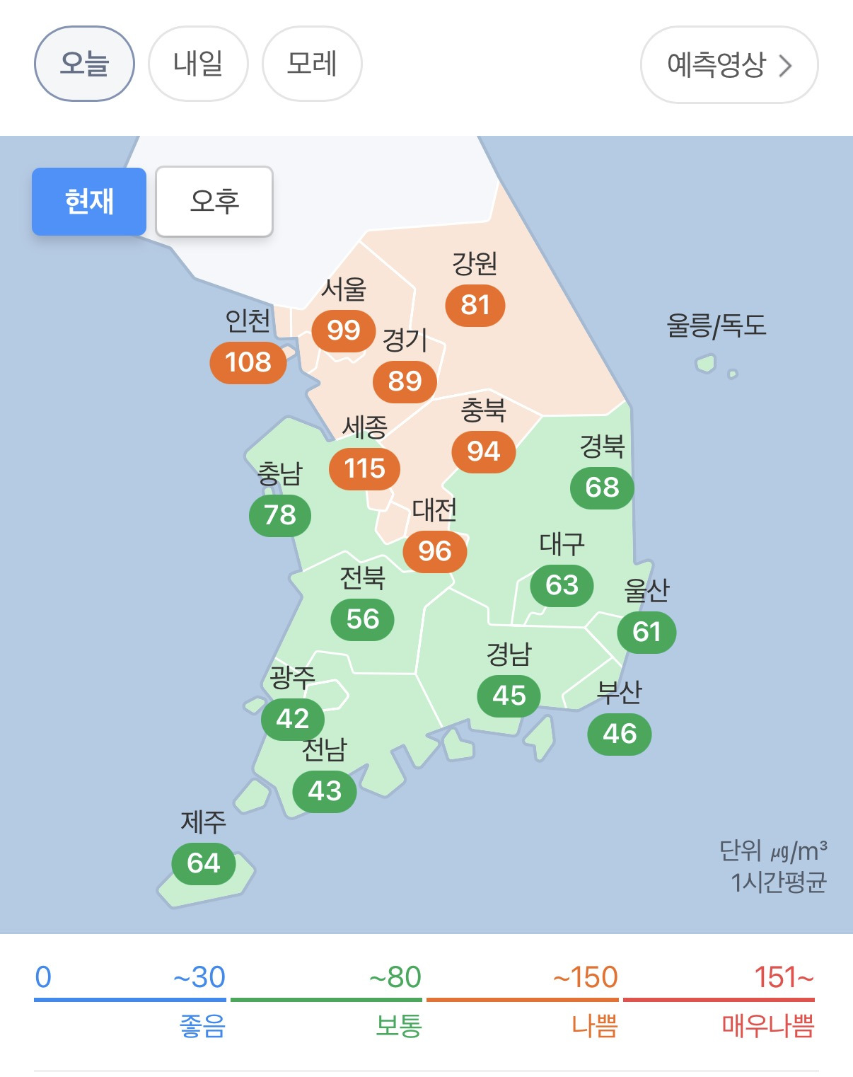 현재 미세먼지 상황 작성자CokeR|작성시간26.01.16|조회수3,191 목록 댓글 3 글자크기 작게가 글자크기 크게가 다음검색 현재 게시글 추가 기능 열기 북마크 공유하기 신고 센터로 신고 댓글 댓글 3 댓글쓰기 답글쓰기 댓글 리스트 작성자오하이오주주 | 작성시간 26.01.16 북쪽에서 차가운 공기 내려오면 싹 필터링 되겠네 작성자치킨에는맥주 | 작성시간 26.01.16 차라리 추워라 제발 아오 작성자정예린 | 작성시간 26.01.16 목 아픔 ㅜㅜ 댓글 전체보기