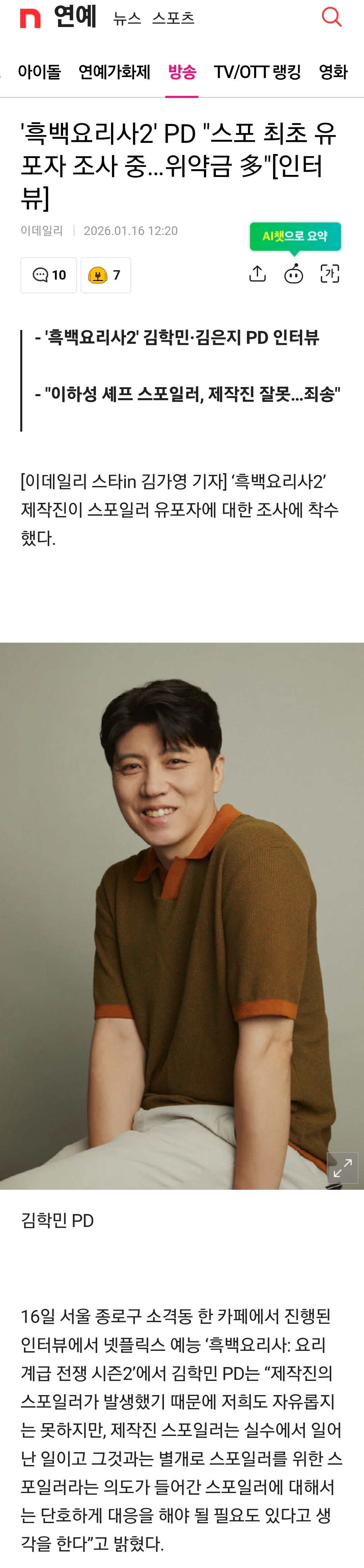 작성자Overture! 작성시간 26.01.17 인터넷 스포는 맞나 틀리나 해서 그려러니하고 보지만 편집 실수로 자체 스포는… 정말 좋은 기획이 많았는데 그 편집 실수로 막판에 김이 팍샜음. 최강록이라는 캐릭터와 서사로 그나마 끝에 감동을 주긴 했지만…