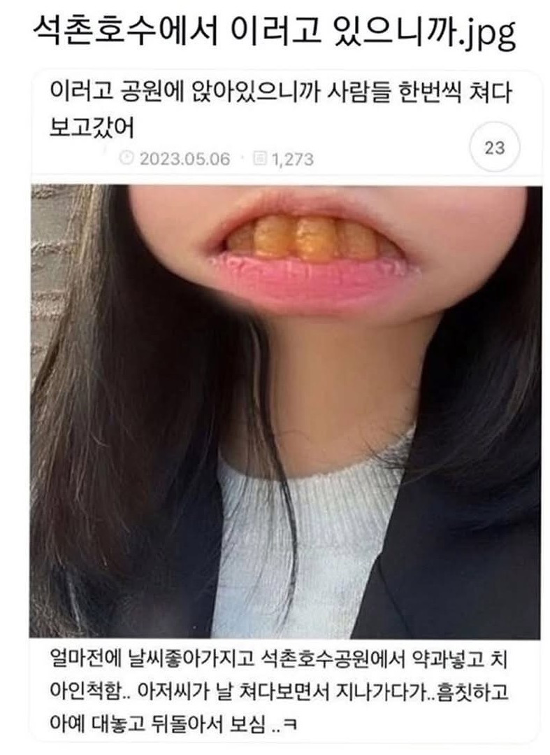 석촌호수에서 이러고 있으니까 작성자가을날4|작성시간26.01.18|조회수19,148 목록 댓글 11 글자크기 작게가 글자크기 크게가 다음검색 현재 게시글 추가 기능 열기 북마크 공유하기 신고 센터로 신고 댓글 댓글 11 댓글쓰기 답글쓰기 댓글 리스트 작성자노어이 | 작성시간 26.01.18 이가 너무 누래서 그래요 작성자내일해야지 | 작성시간 26.01.18 이미지 확대 작성자I.B.I LUV | 작성시간 26.01.18 ㅋㅋㅋㅋㅋㅋㅋㅋㅋ 작성자필리포 풍자기 | 작성시간 26.01.18 ㅋㅋㅋㅋㅋㅋㅋㅋㅋㅋㅋㅋㅋㅋㅋㅋ 작성자Andrea Pirlo 21 | 작성시간 26.01.18 ㅋㅋㅋㅋㅋㅋㅋㅋㅋㅋㅋ 댓글 전체보기