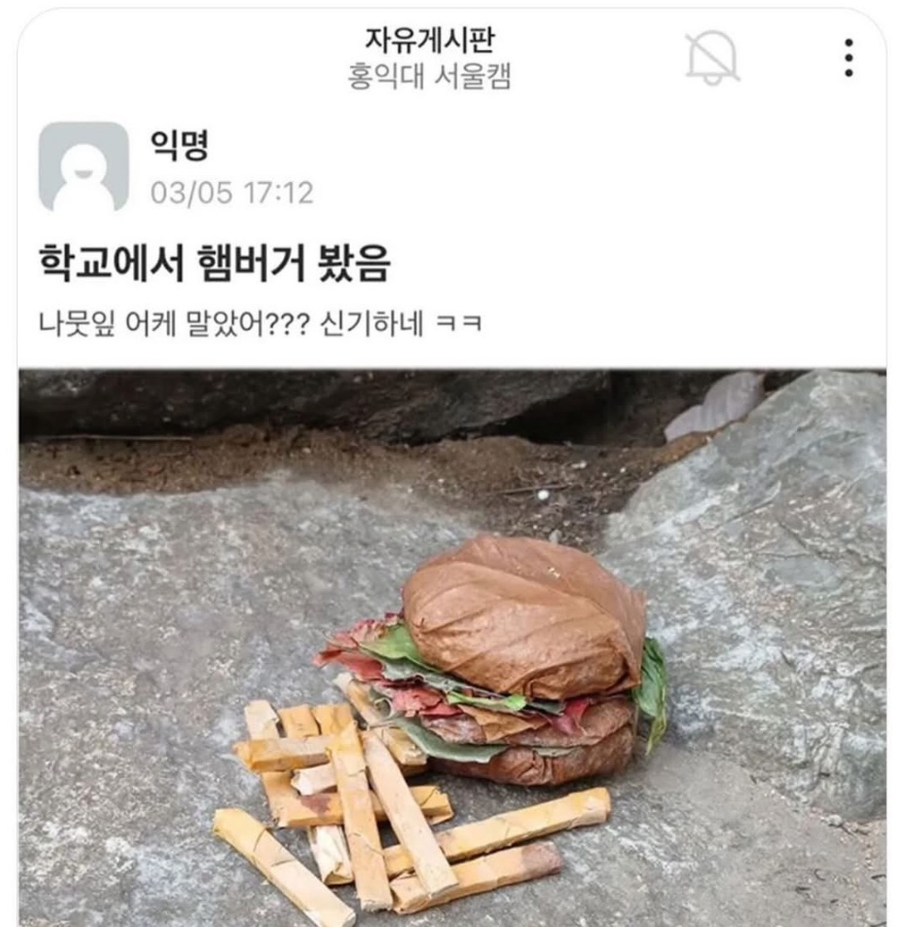 학교에서 햄버거 봤음 작성자가을날4|작성시간26.01.19|조회수9,344 목록 댓글 7 글자크기 작게가 글자크기 크게가 다음검색 현재 게시글 추가 기능 열기 북마크 공유하기 신고 센터로 신고 댓글 댓글 7 댓글쓰기 답글쓰기 댓글 리스트 작성자채화 | 작성시간 26.01.19 잘만들었네ㅋㅋㅋㅋㅋㅋ 작성자농구인 | 작성시간 26.01.19 오 ㅋㅋㅋ 작성자정예린 | 작성시간 26.01.19 ㅋㅋㅋㅋ 작성자램파드 | 작성시간 26.01.19 버거킹이네ㅋㅋㅋ 작성자I.B.I LUV | 작성시간 26.01.19 잘 만들었네 오오 댓글 전체보기