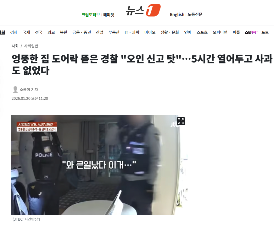 [기사]엉뚱한 집 도어락 뜯은 경찰 "오인 신고 탓"…5시간 열어두고 사과도 없었다 작성자음교수2|작성시간26.01.20|조회수3,651 목록 댓글 3 글자크기 작게가 글자크기 크게가 https://www.news1.kr/society/general-society/6044605 다음검색 현재 게시글 추가 기능 열기 북마크 공유하기 신고 센터로 신고 댓글 댓글 3 댓글쓰기 답글쓰기 댓글 리스트 작성자Paul Dummett | 작성시간 26.01.20 ㅁㅊ 제정신인가 장난하나 미친 작성자블랙 | 작성시간 26.01.20 다 사람들이 하는일이라 실수 당연히할수있지 근데 그이후 대처는 확실히 해야지~~ 작성자I.B.I LUV | 작성시간 26.01.21 이보쇼......... 배상은 당연히 해줘야 겠지? 댓글 전체보기