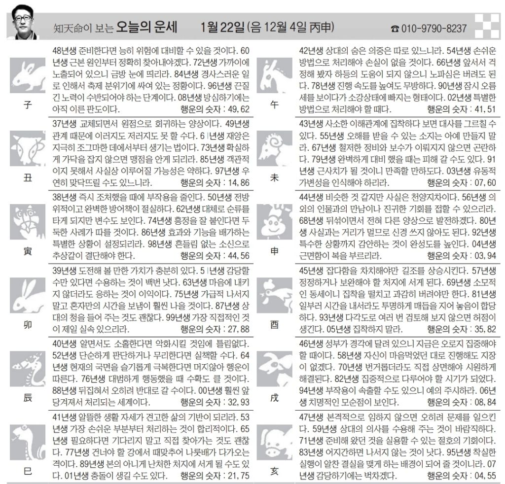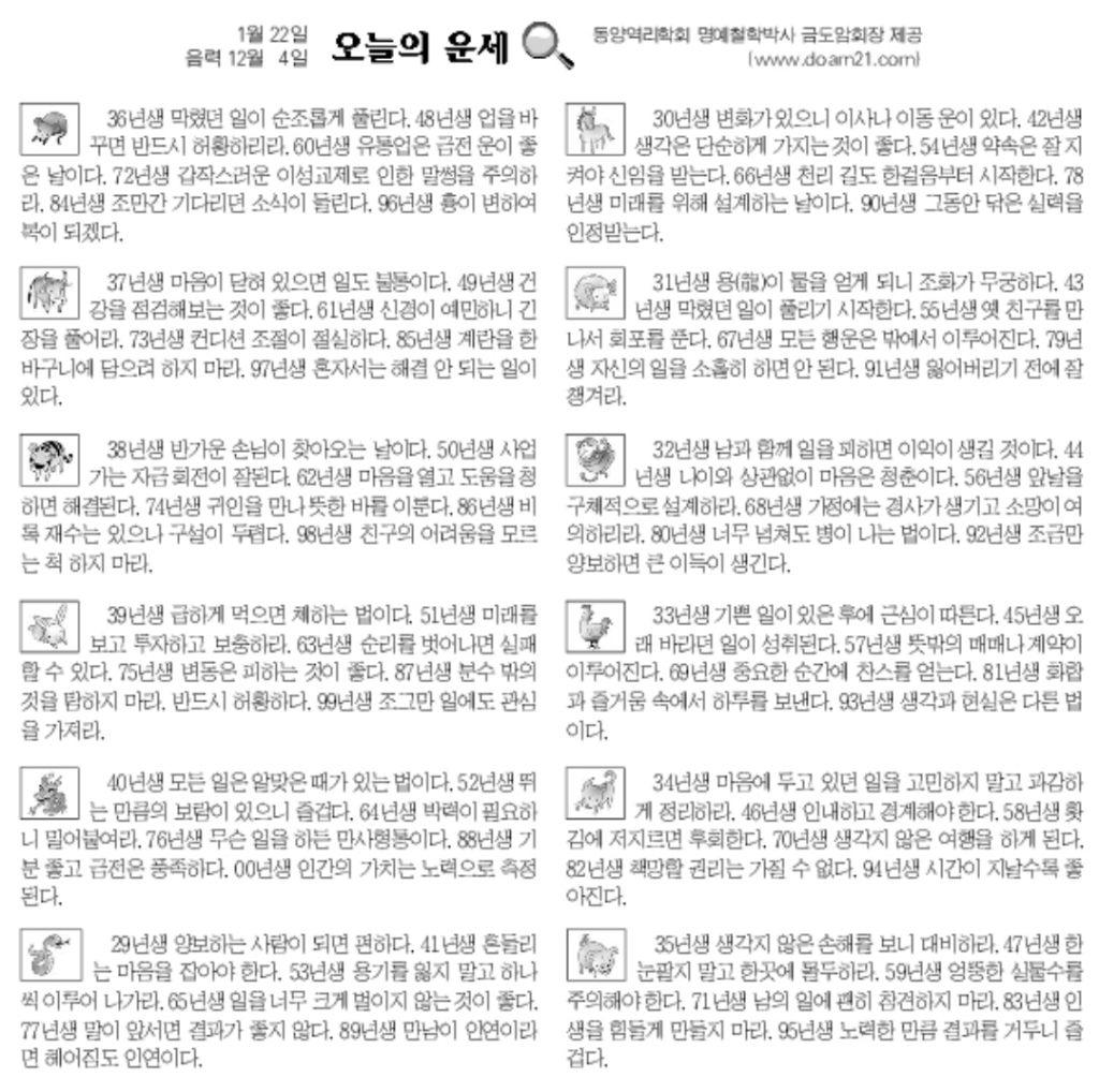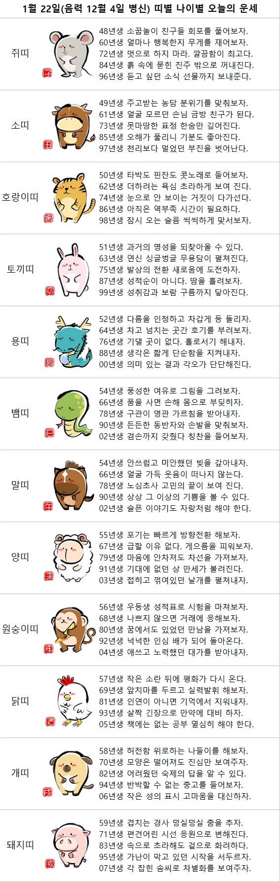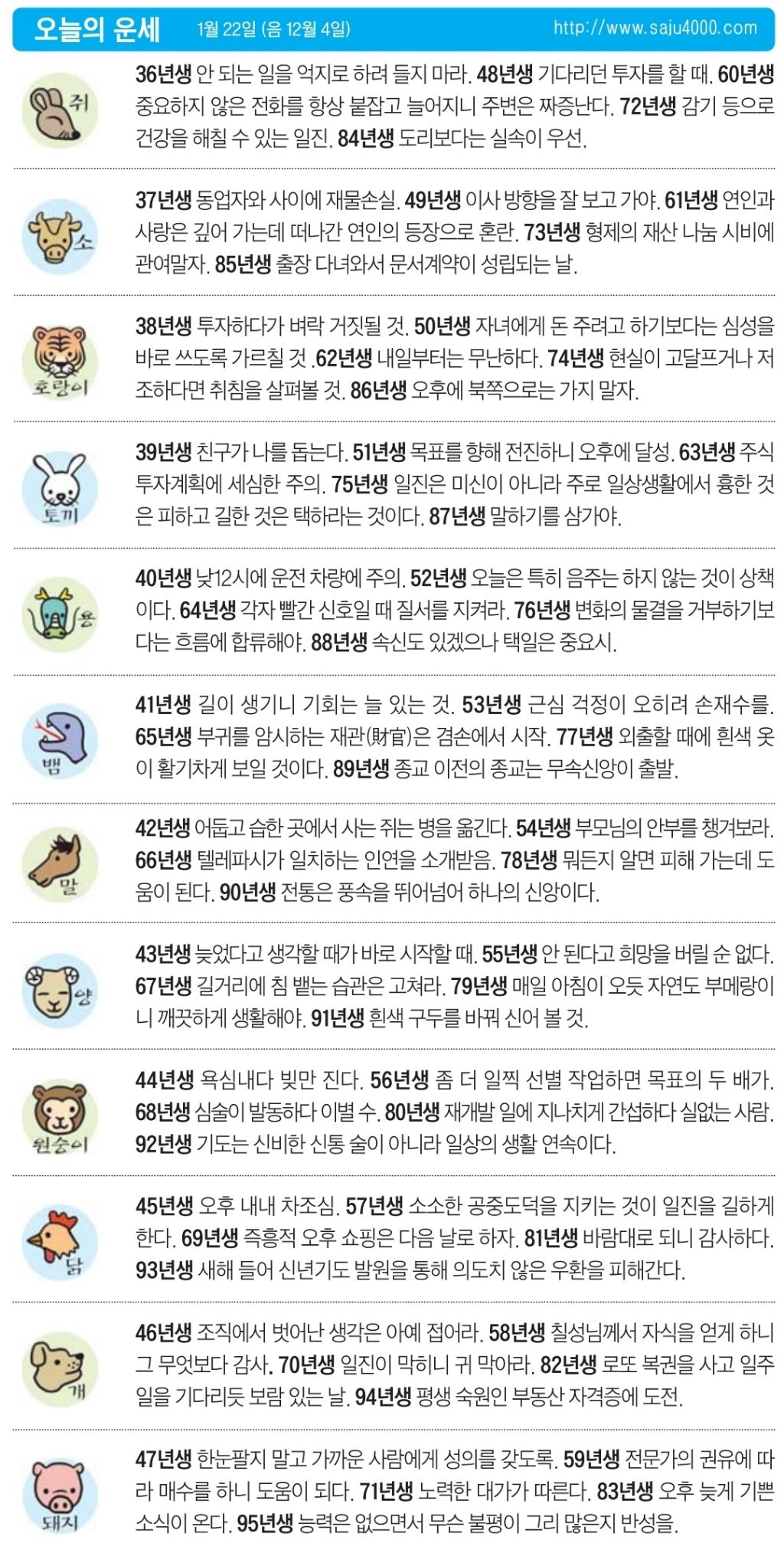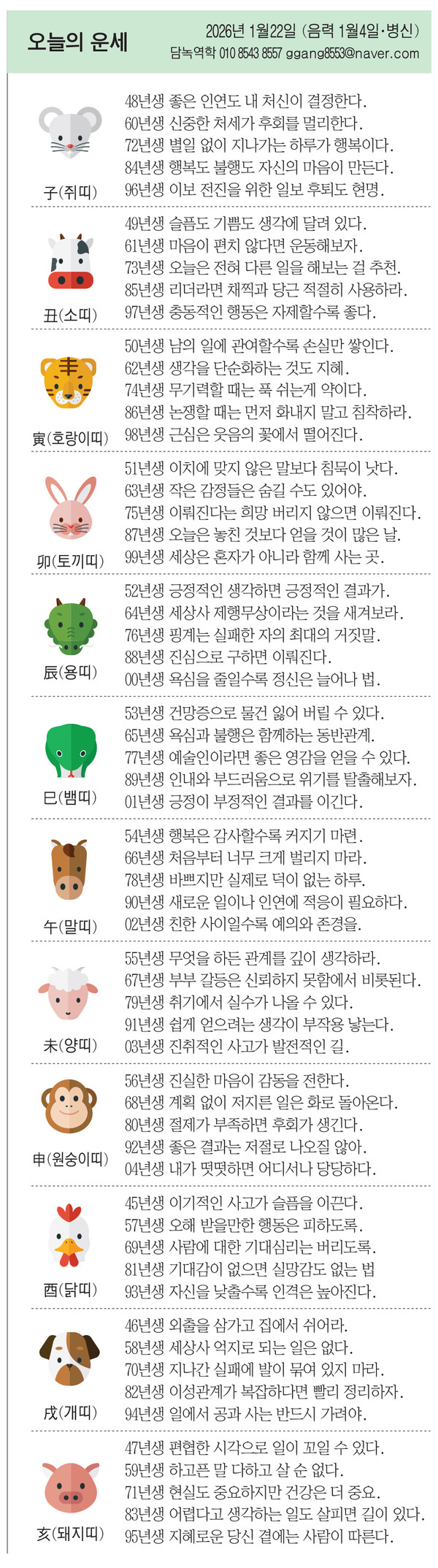 1월 22일 목요일 오늘의 운세 작성자난누군가또여긴어딘가.|작성시간26.01.22|조회수2,762 목록 댓글 22 글자크기 작게가 글자크기 크게가 다음검색 현재 게시글 추가 기능 열기 북마크 공유하기 신고 센터로 신고 댓글 댓글 22 댓글쓰기 답글쓰기 댓글 리스트 작성자전우치 | 작성시간 26.01.22 복채용 작성자부처님 | 작성시간 26.01.22 복채요! 작성자데이빗베컴이 | 작성시간 26.01.22 복채요 작성자GENESIS | 작성시간 26.01.22 복채요! 작성자만화소년 | 작성시간 26.01.22 복채요.^^ 댓글 전체보기