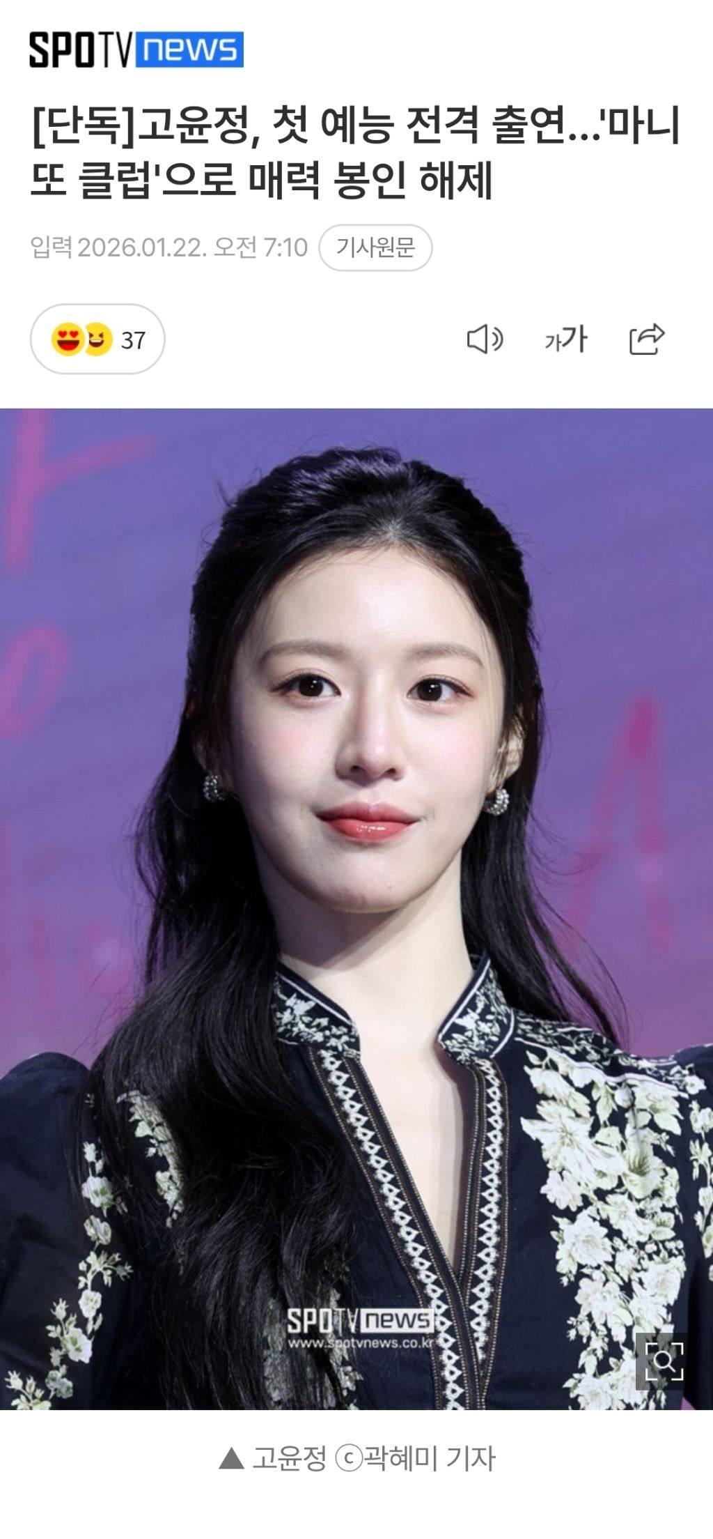 [연예][단독]고윤정, 첫 예능 전격 출연…'마니또 클럽'으로 매력 봉인 해제 작성자Goyounjung|작성시간26.01.22|조회수2,954 목록 댓글 5 글자크기 작게가 글자크기 크게가 https://m.entertain.naver.com/home/article/477/0000589949[단독]고윤정, 첫 예능 전격 출연…'마니또 클럽'으로 매력 봉인 해제여기를 눌러 링크를 확인하세요m.entertain.naver.com 다음검색 현재 게시글 추가 기능 열기 북마크 공유하기 신고 센터로 신고 댓글 댓글 5 댓글쓰기 답글쓰기 댓글 리스트 작성자하파엘 Leao | 작성시간 26.01.22 작성자카리나Kirina | 작성시간 26.01.22 도라미야? 차무희야? 작성자맨유우승하자좀 | 작성시간 26.01.22 고정?ㅋㅋㅋ 캐스팅조합 디게독특하네 작성자John Aldridge | 작성시간 26.01.22 헐 예능한다고? 갑자기? ㅋㅋㅋㅋㅋㅋㅋㅋㅋㅋㅋㅋㅋㅋㅋㅋㅋㅋ 작성자정예린 | 작성시간 26.01.22 ㅅㅅㅅㅅ 댓글 전체보기