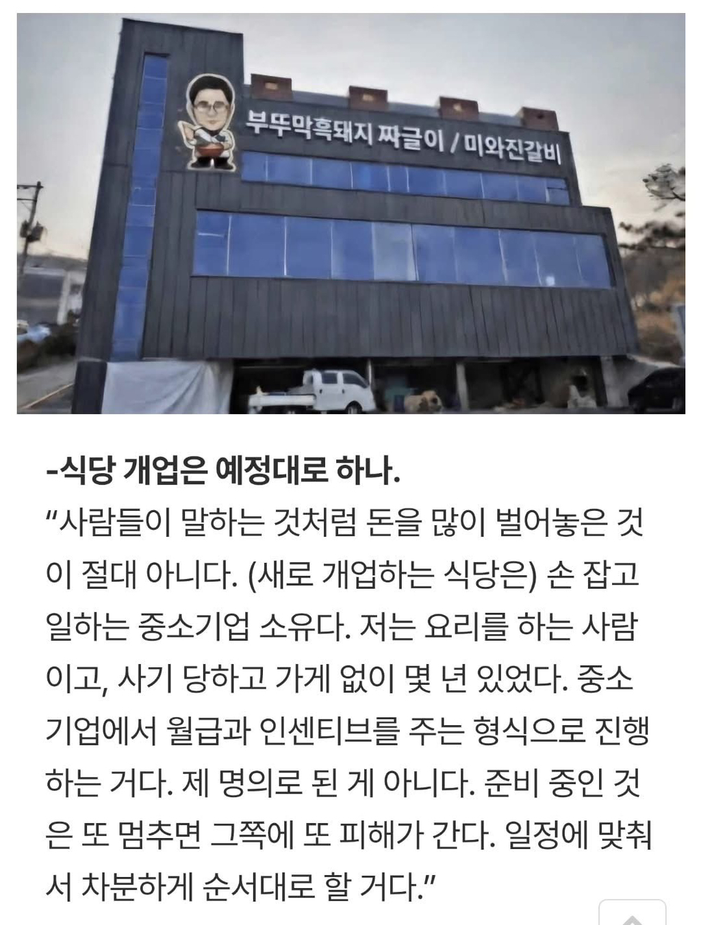 임성근, 식당 개업은 예정대로 진행 예정 작성자가을날4|작성시간26.01.23|조회수4,966 목록 댓글 20 글자크기 작게가 글자크기 크게가 인터뷰 상으론 재능기부 형식의 유튜브와 식당 운영은 할 예정이라 함 다음검색 현재 게시글 추가 기능 열기 북마크 공유하기 신고 센터로 신고 댓글 댓글 20 댓글쓰기 답글쓰기 댓글 리스트 작성자정예린 | 작성시간 26.01.23 기자들 ㅡㅡ 작성자신길동유망주 | 작성시간 26.01.23 사실 연예활동도 하거나 말거나 시장이 선택하는게 맞는데 본업까지 이래라 저래라 하네. 작성자중고차파괴자 | 작성시간 26.01.23 생업은 건들지말아야지 기레기 ㄱㅅㄲ네 작성자인천제로콜라 | 작성시간 26.01.23 식당은 개업해야지 ! 작성자Amantes Verum | 작성시간 26.01.23 기레기들 숨은 예정대로 쉴 예정 댓글 전체보기